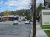 CR 27 ends here at NY 141. Turn left at the traffic light to stay on Bedford Road and go north on NY 141. Turn right onto Broadway to go south.