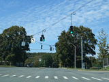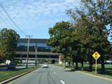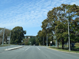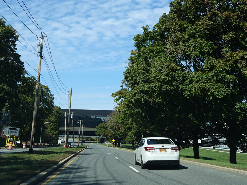 Old Saw Mill River Road begins at Grasslands Road (NY 100C) near its interchange with Saw Mill River Road (NY 9A). It runs west through Hawthorne as a four-lane divided road with a grass median.