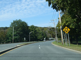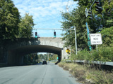 There is an interchange with the Saw Mill Parkway. There are two overpasses here. The first is the North County Trailway, a rail trail, while the second is the parkway. Old Saw Mill River Road ends here. Nepperan Road, a local street, is straight ahead.