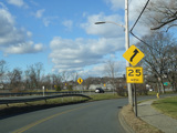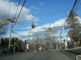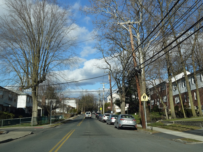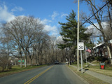 Immediately after the traffic light, Underhill Avenue ends at an uncontrolled intersection. Continue straight ahead for Lake Street (CR 32). Turn left for Harrison Boulevard (CR 32B).