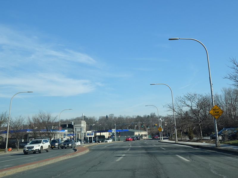 The right lane ends. There is a traffic light at South Kensico Avenue. CR 71 ends here. Westchester Avenue continues straight ahead as CR 62.