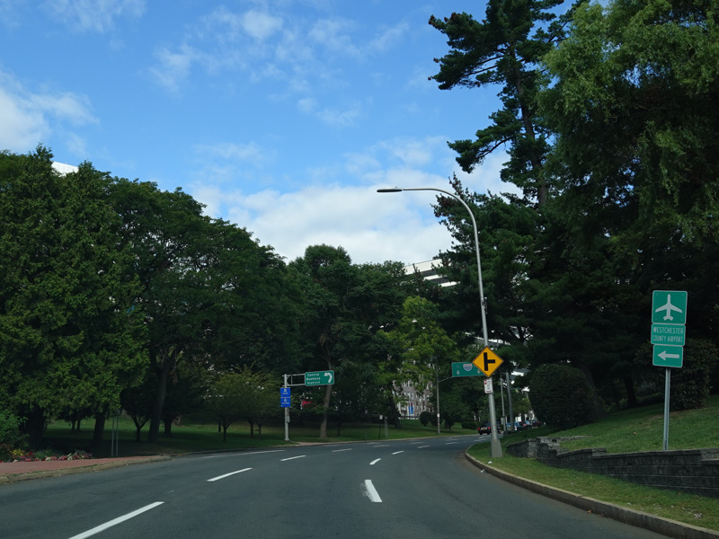 These airport sign in this pictures has been replaced with a new sign for NY 119, NY 22, and I-287. The overhead signs ahead on North Broadway (NY 22) have been removed.