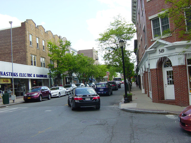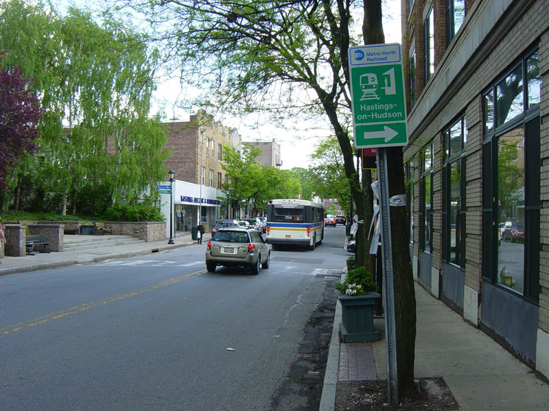 Warburton Avenue begins at Broadway (US 9) in Hastings-on-Hudson and runs south as a two-lane undivided road.