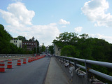 There is a land bridge over the train station parking lot. When these pictures were taken, construction work was in progress to rehabilitate the bridge.