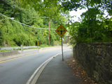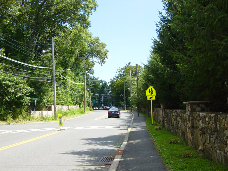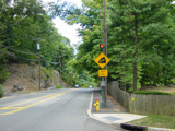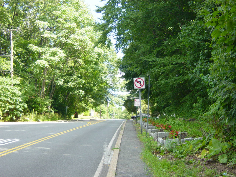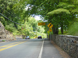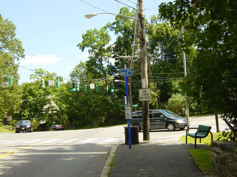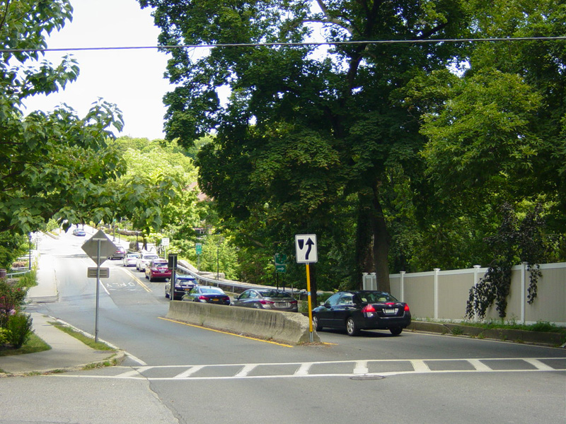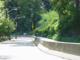 At the bottom of the hill, the divider ends. Ardsley Road changes designation here to become CR 78A. Turn right to go south on the Bronx Parkway.