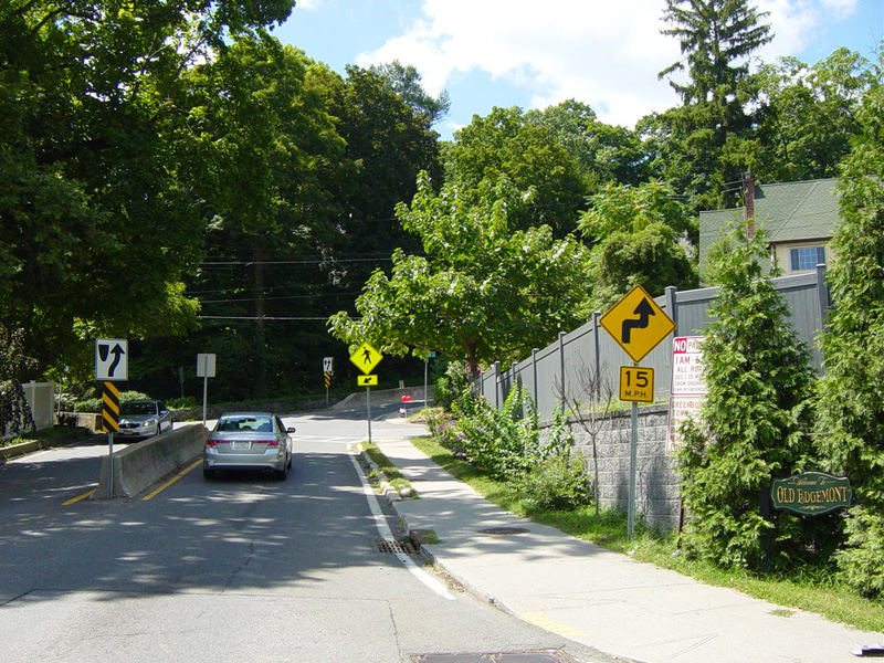 Ardsley Road changes designation from CR 78A to CR 78 at the end of the bridge over the Bronx River. It becomes a divided road and ascends a small switchback.
