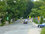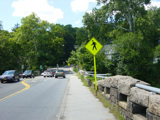 A small bridge carries Ardsley Road over the Bronx River. On the other side of the bridge, it changes designation from CR 78A to CR 78. Turn left for an entrance to the Bronx Parkway south.