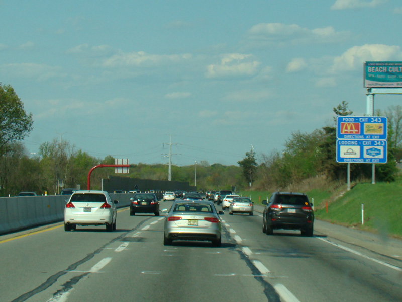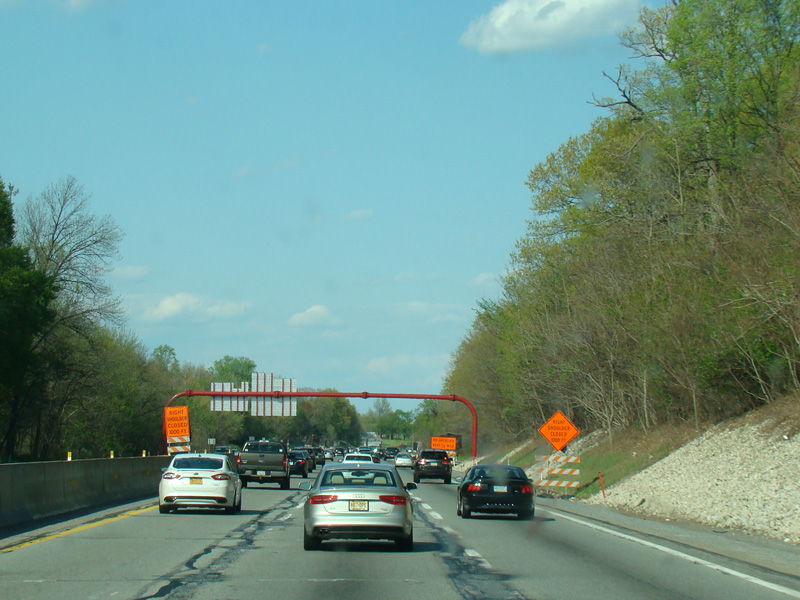 These pictures show the Pennsylvania Turnpike as it appeared while construction work was in progress to add an exit only lane for exit 343.
