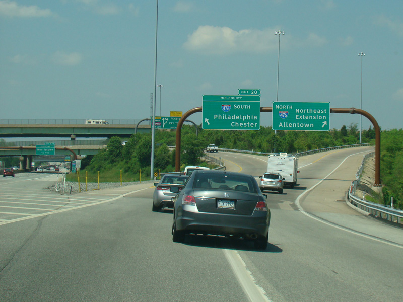 The ramp from the Pennsylvania Turnpike west to I-476 splits. Bear left to go south or right to go north.