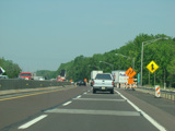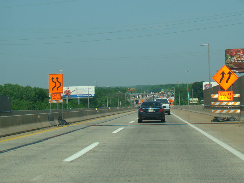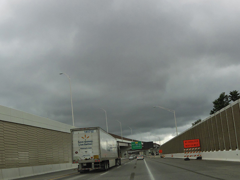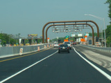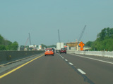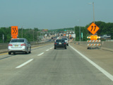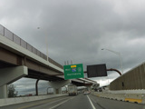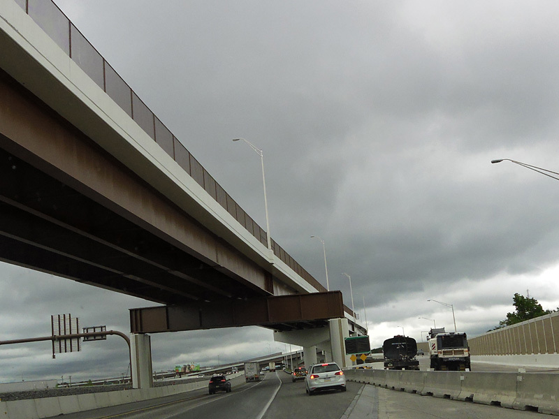 These pictures show the area of the new interchange as it was nearing completion. The new signs were in place but still covered, and the entrance to the new flyover roadway was not yet open.