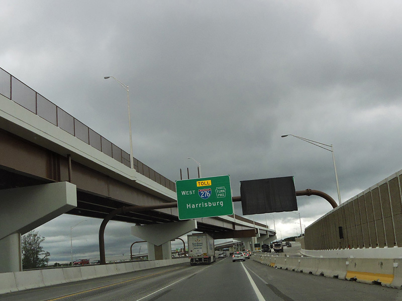 These pictures show the easternmost section of the Pennsylvania Turnpike as it appeared in 2016. This section was then part of I-276 but has since been redesignated I-95. At the time, the interchange with the Delaware Expressway (I-95) in Bristol was still under construction. The toll for the Delaware River Bridge had just been converted to cashless tolling, and the old tollbooth was still standing.