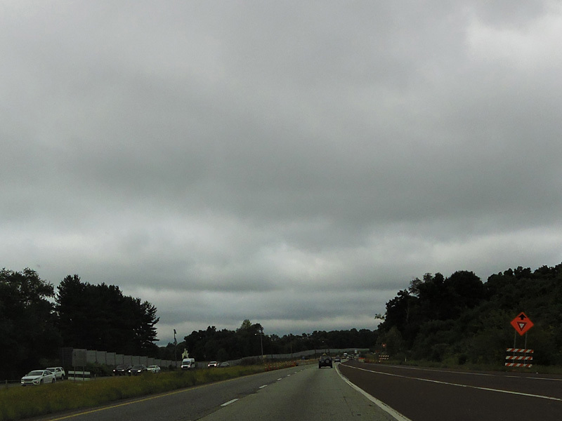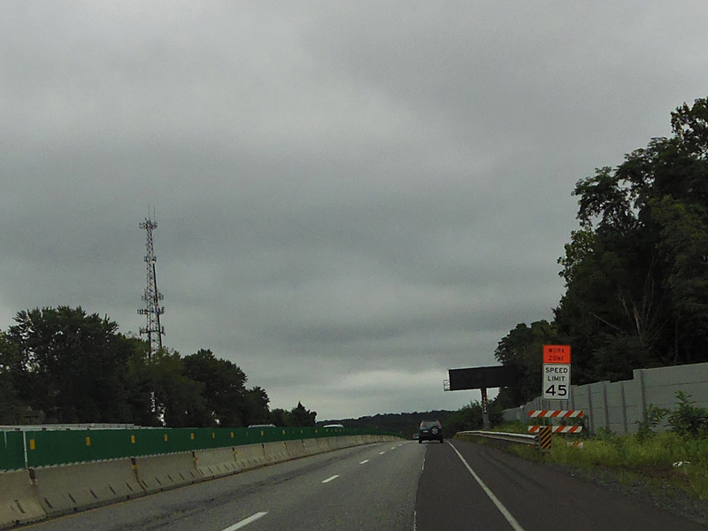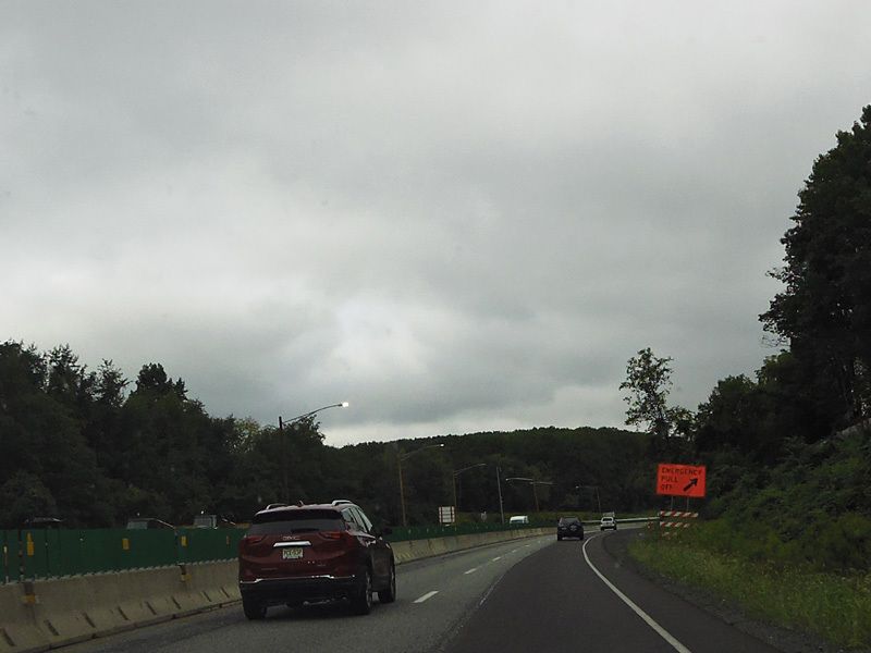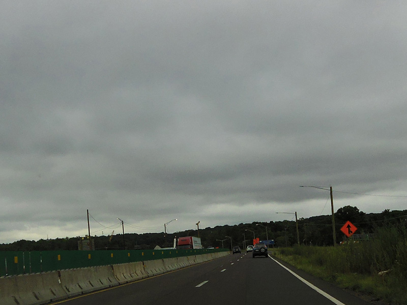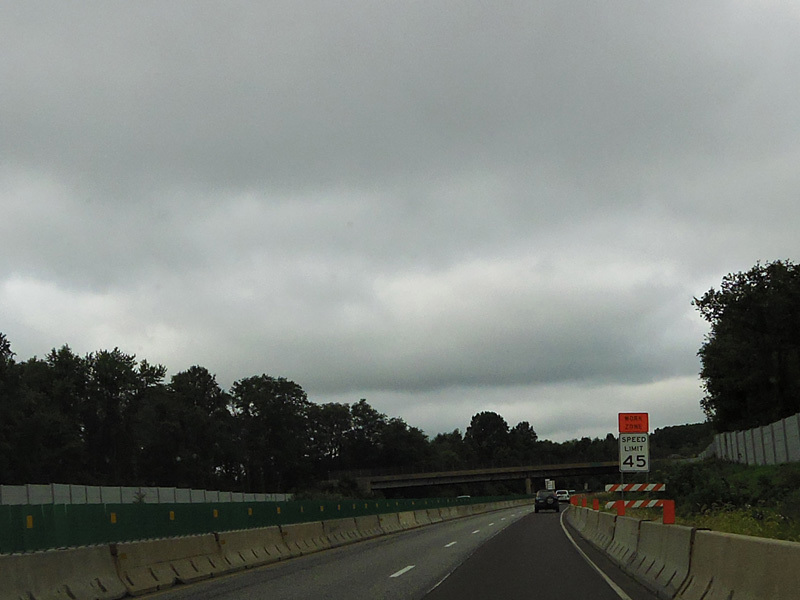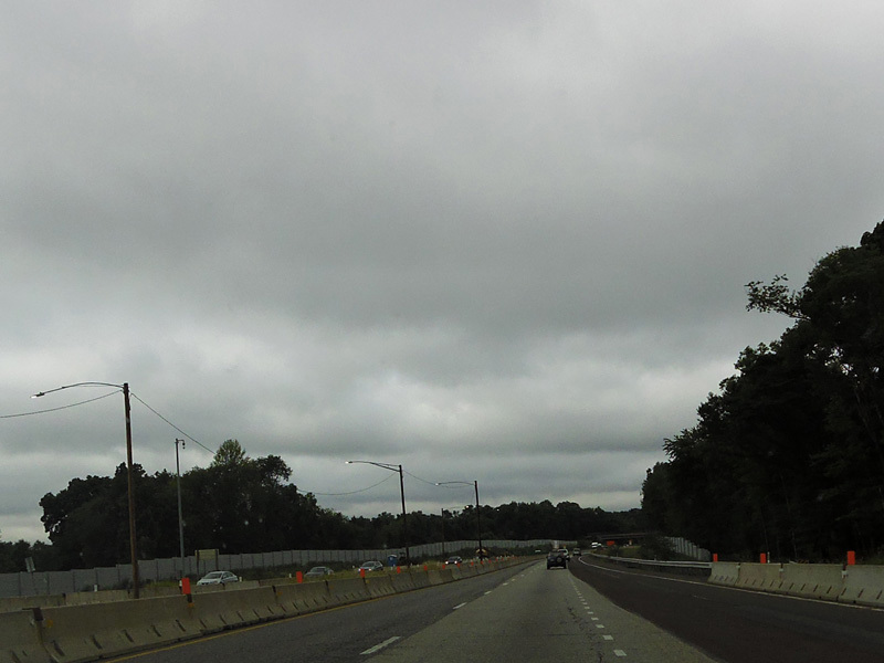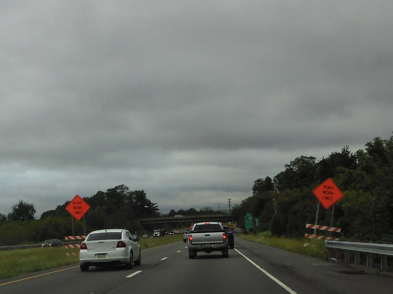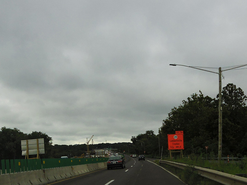 These pictures show the Delaware Expressway at exits 8-10 approaching the Scudders Falls Bridge as it appeared while the bridge was being replaced. Construction work was in progress to widen this section to three lanes in each direction to match the new bridge.
