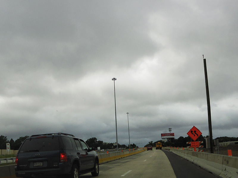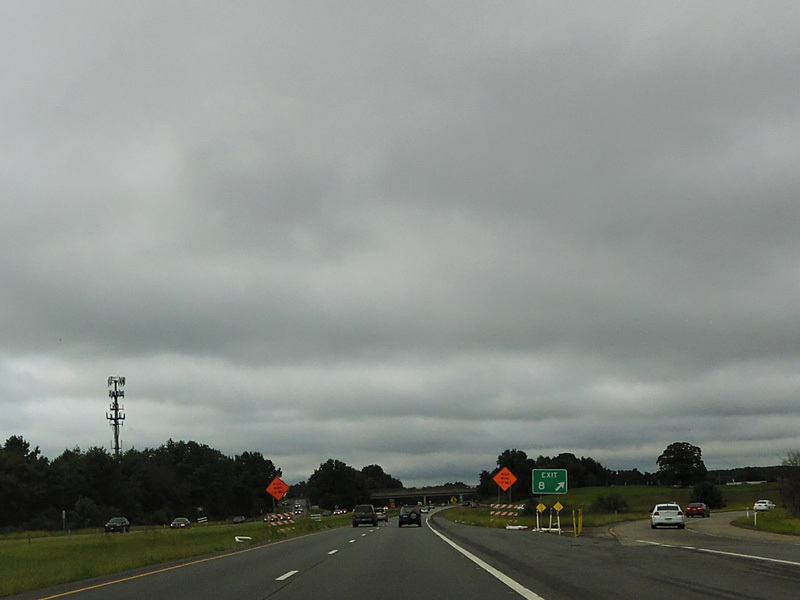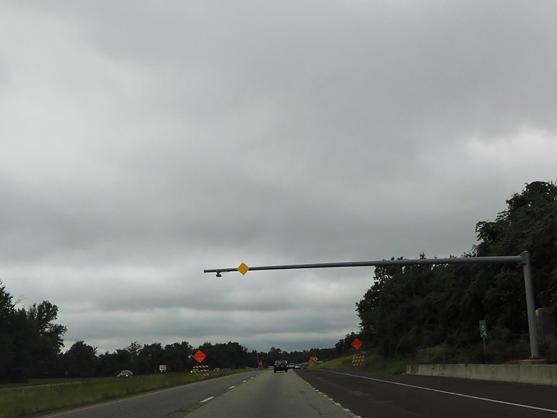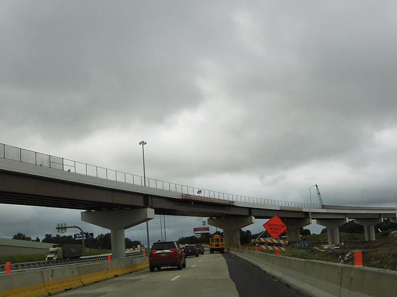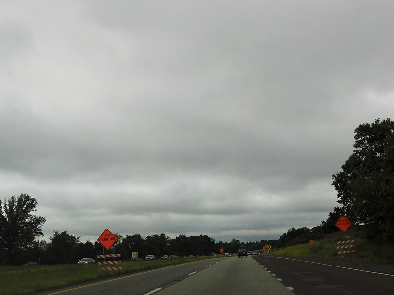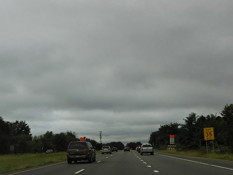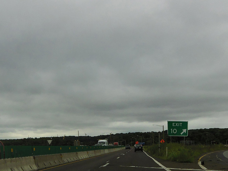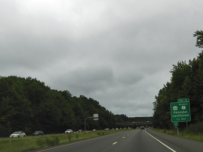 These pictures show the Delaware Expressway at exits 8-10 approaching the Scudders Falls Bridge as it appeared while the bridge was being replaced. Construction work was in progress to widen this section to three lanes in each direction to match the new bridge.