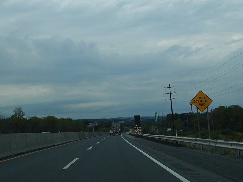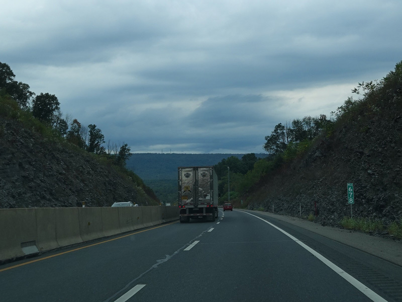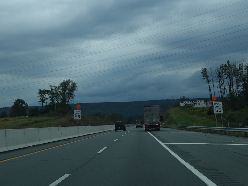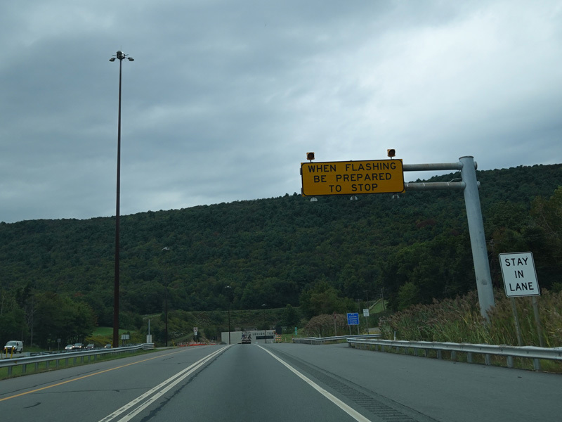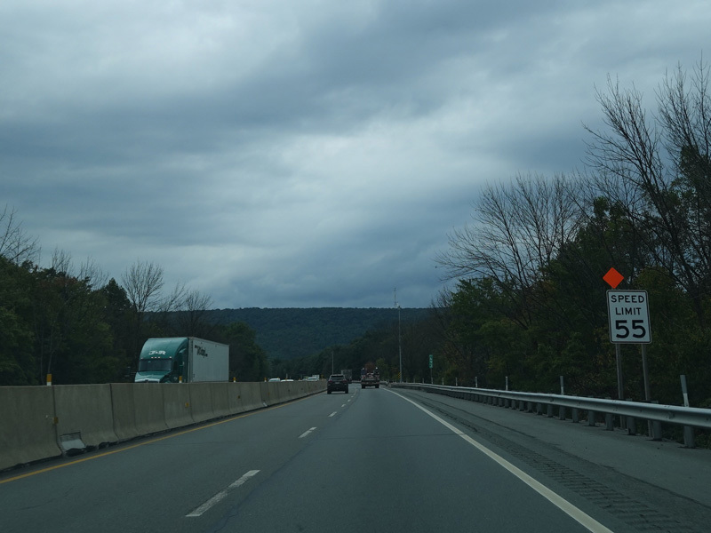 Approaching the Lehigh Tunnel, the speed limit drops to 55 MPH.