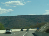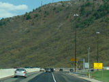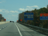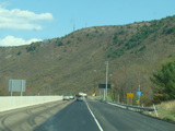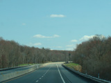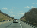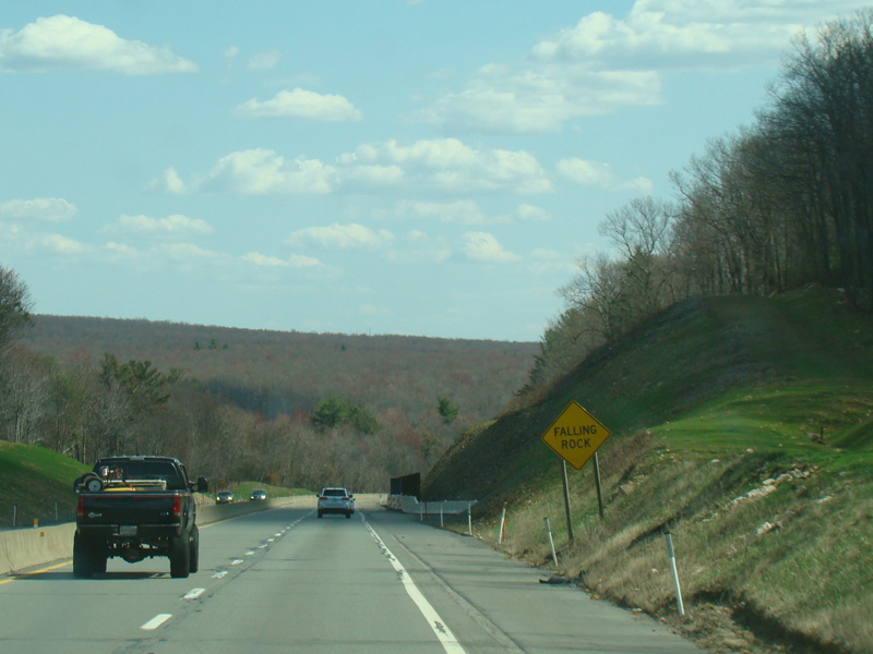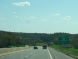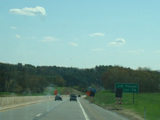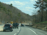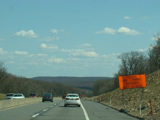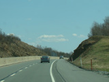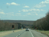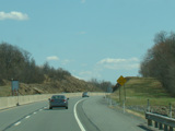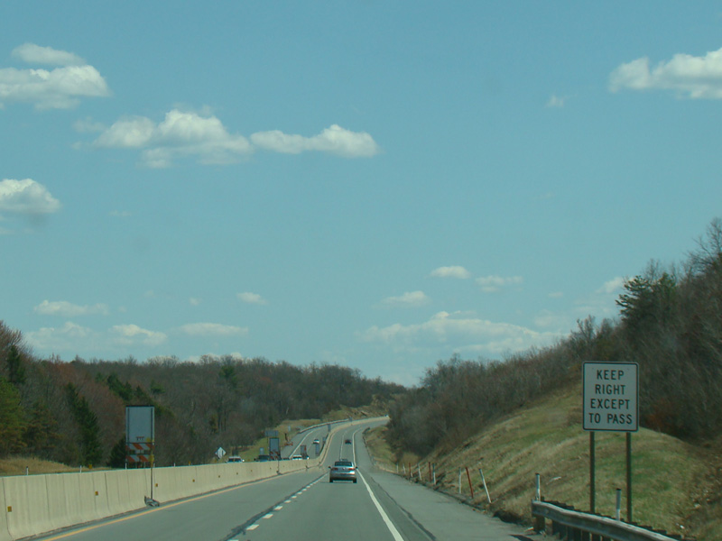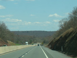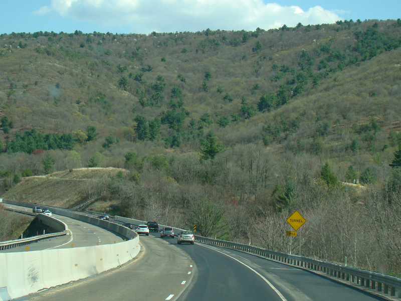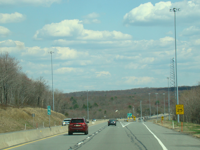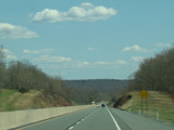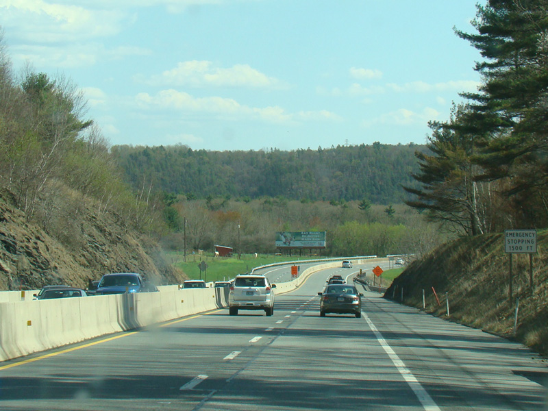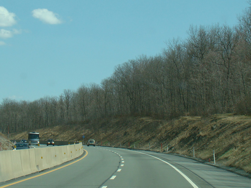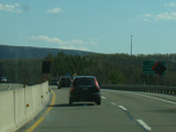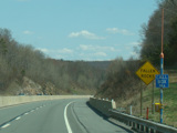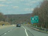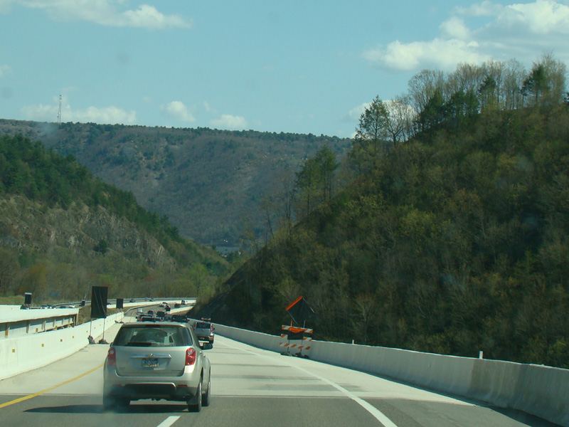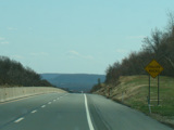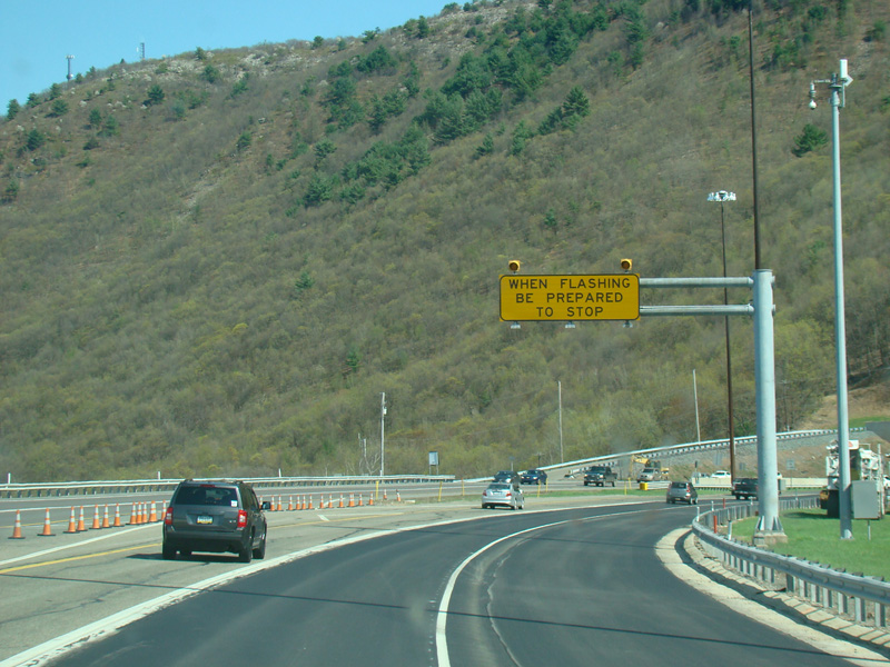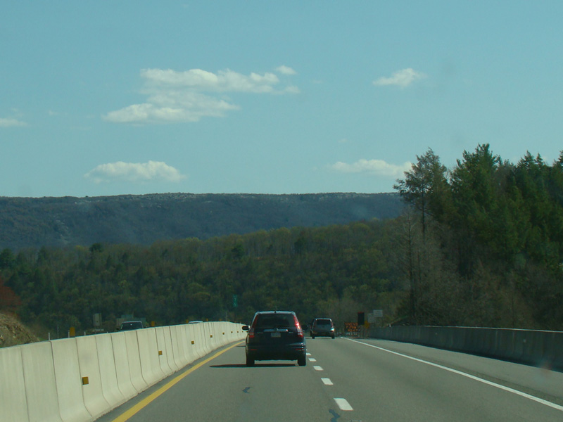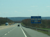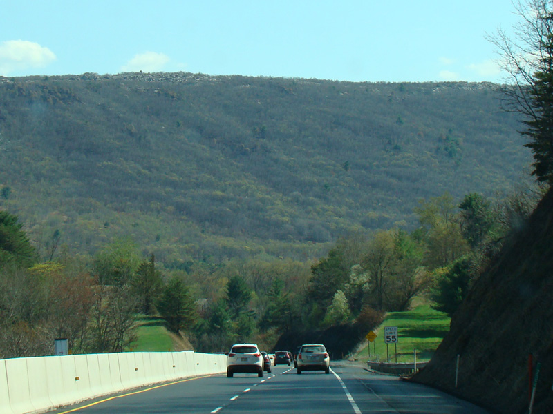 The turnpike descends toward the foot of Blue Mountain, and the speed limit drops to 55 MPH.