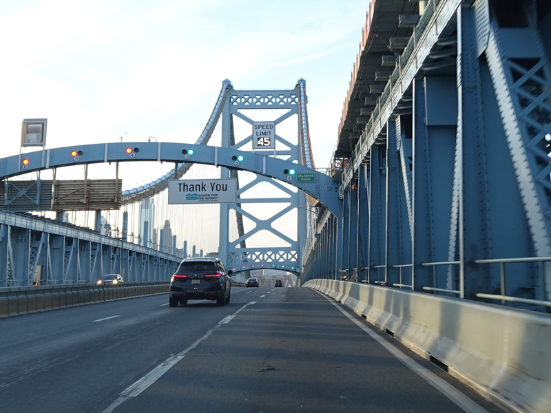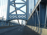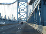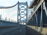 The Ben Franklin Bridge is a suspension bridge across the Delaware from Camden to Philadelphia.