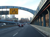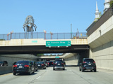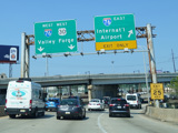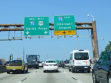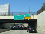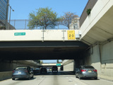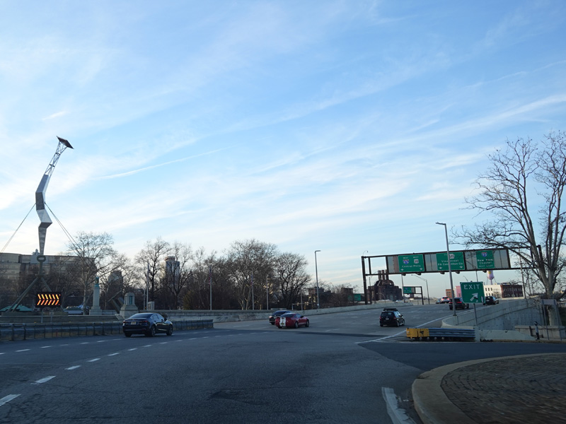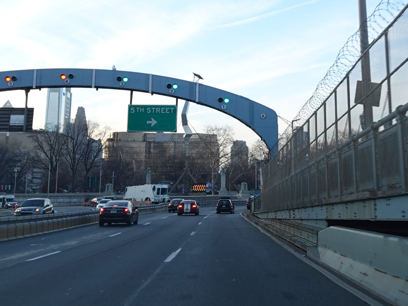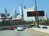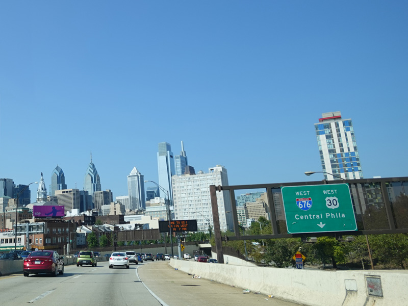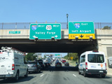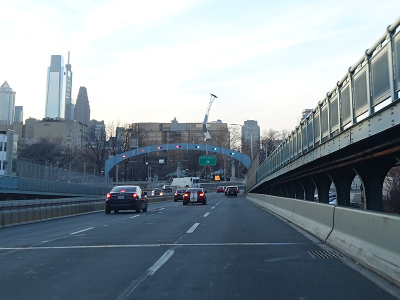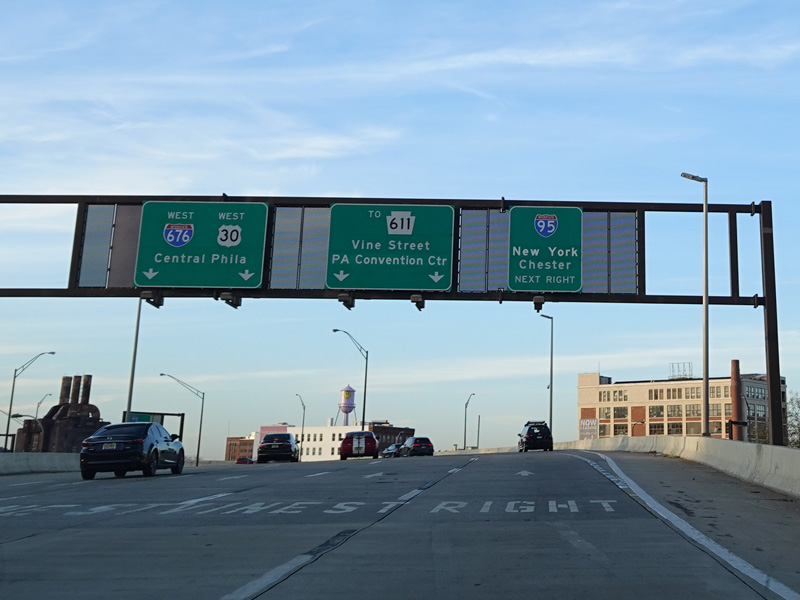 The Vine Street Expressway ends here at the Schuylkill Expressway (I-76). Bear right to go east. Continue straight ahead to go west and to stay on US 30. I-676 ends here.
