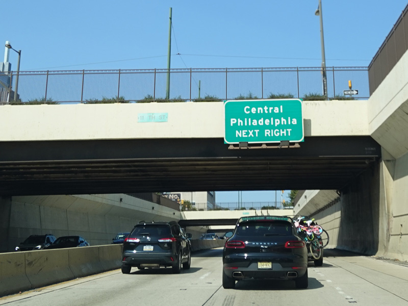 There is an exit on the right for the Delaware Expressway (I-95).