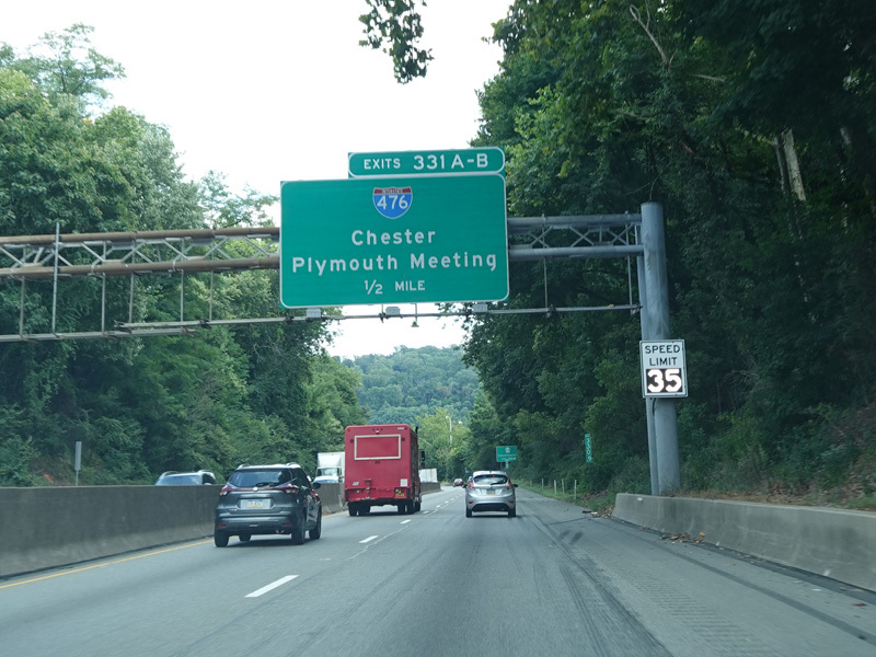 Exits 331A-B are for the Mid-County Expressway (I-476) and PA 23.