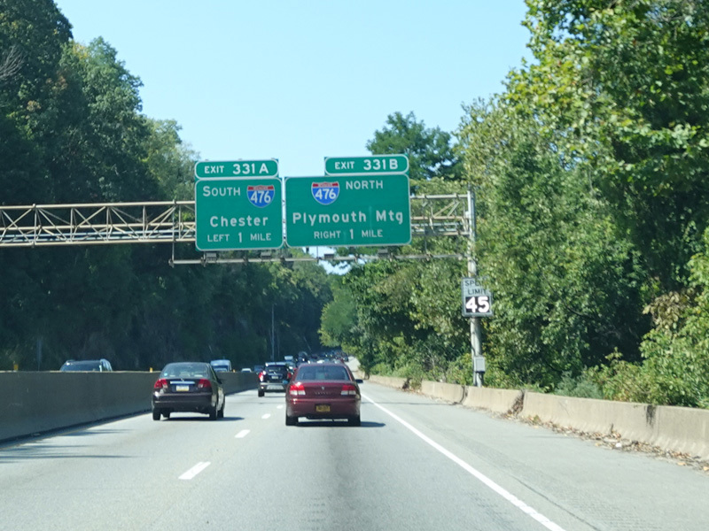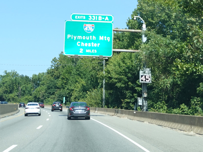 Exits 331B-A are for the Mid-County Expressway (I-476).