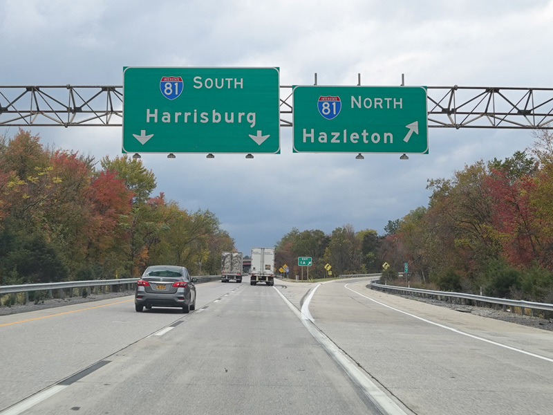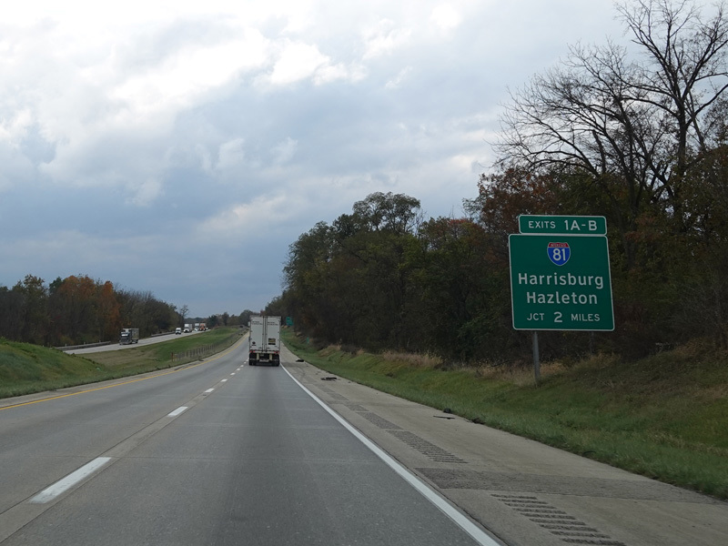 Exits 1A-B are for I-81. Bear right for exit 1A to go north. Continue straight ahead for exit 1B to go south.