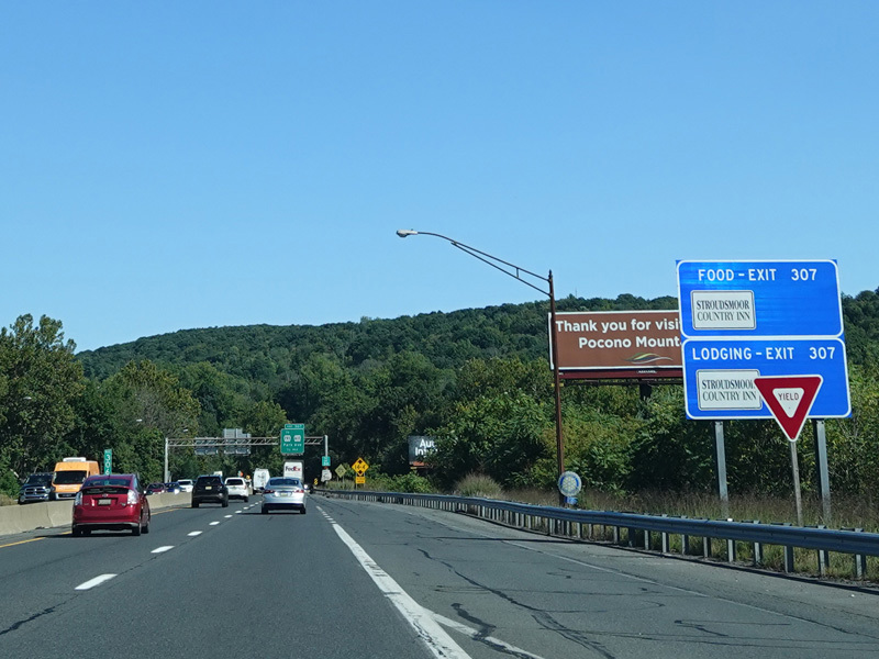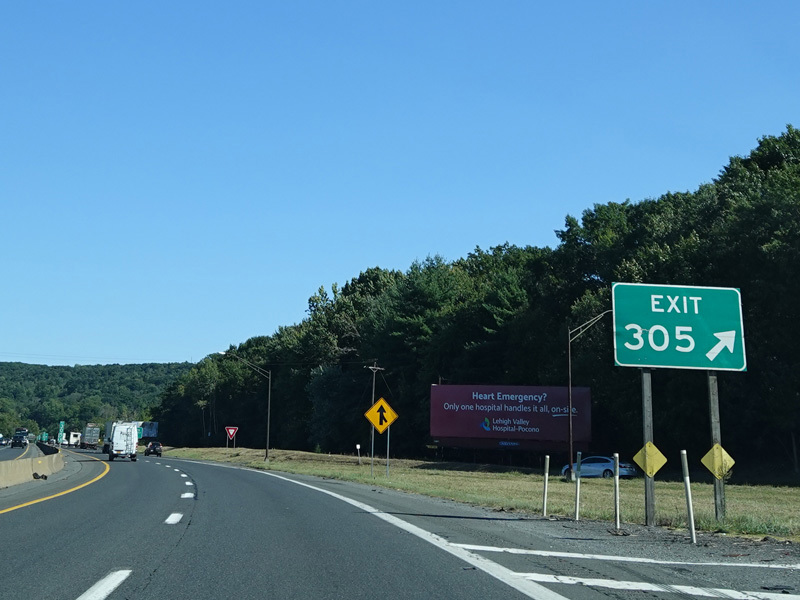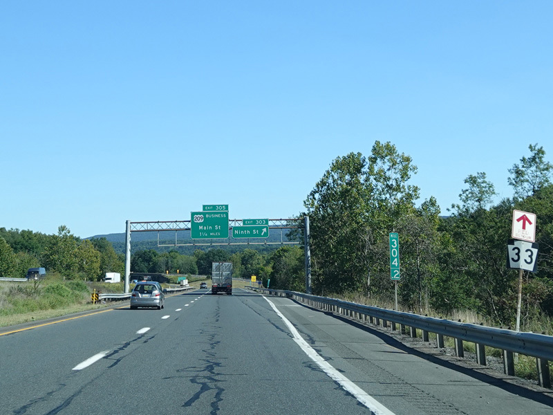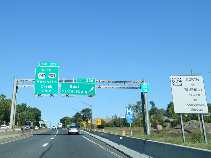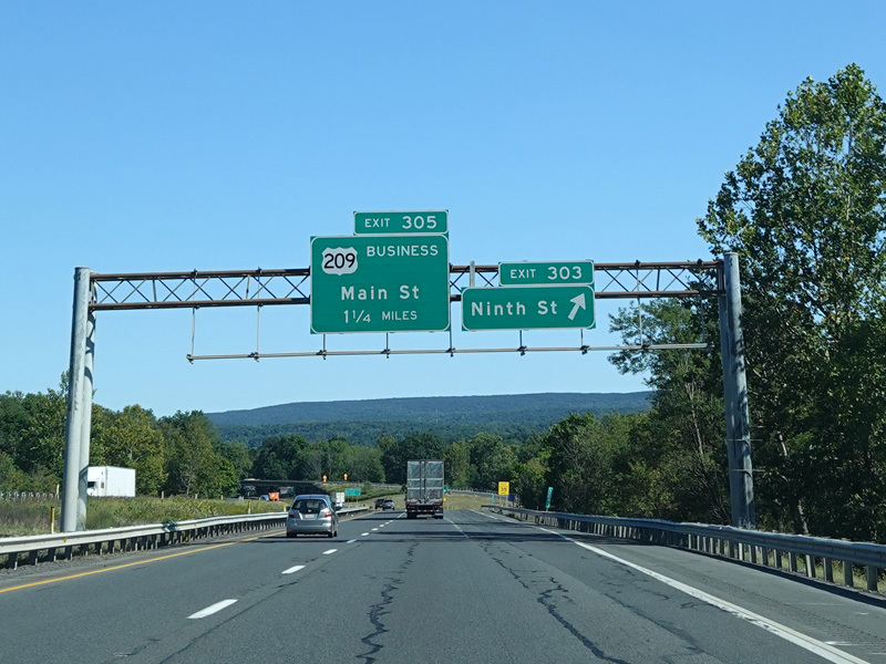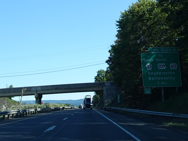 Exit 309 is for Seven Bridge Road (US 209) north and Independence Road (PA 447) north.