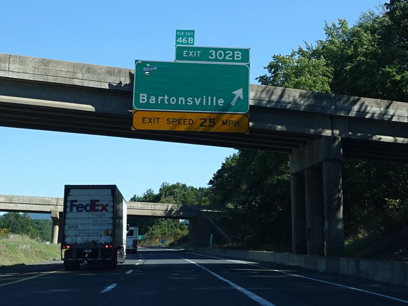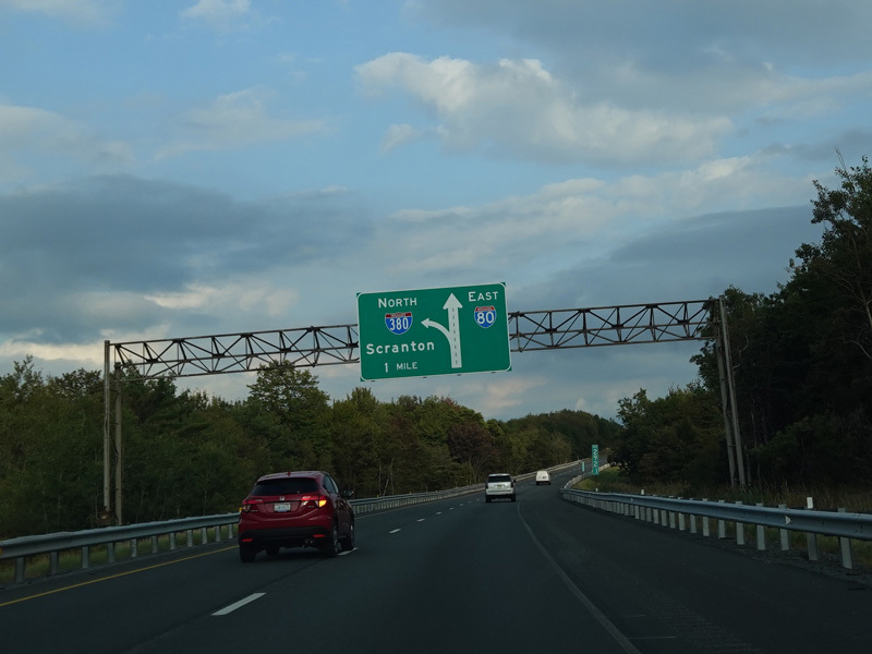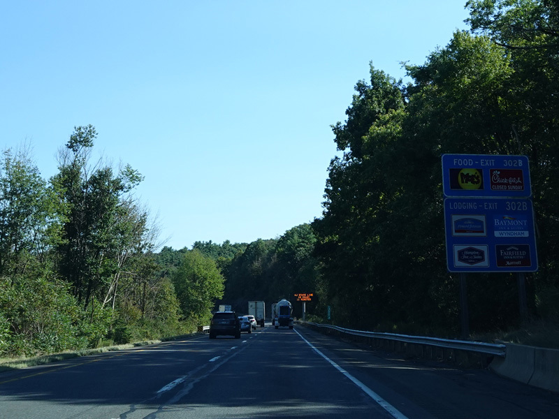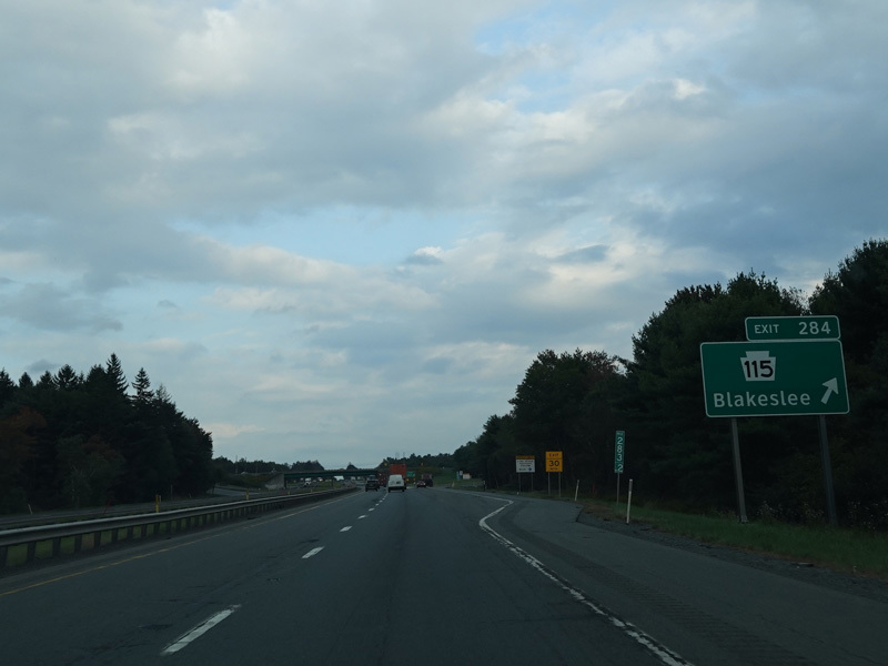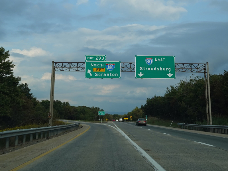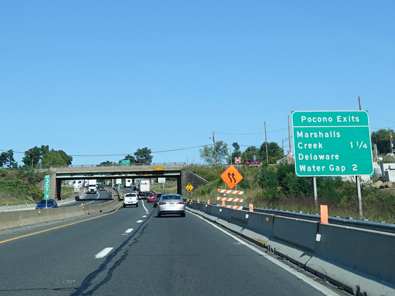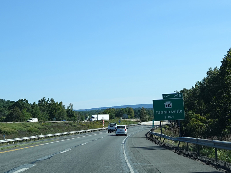 Exit 309 is for Seven Bridge Road (US 209) north and Independence Road (PA 447) north.