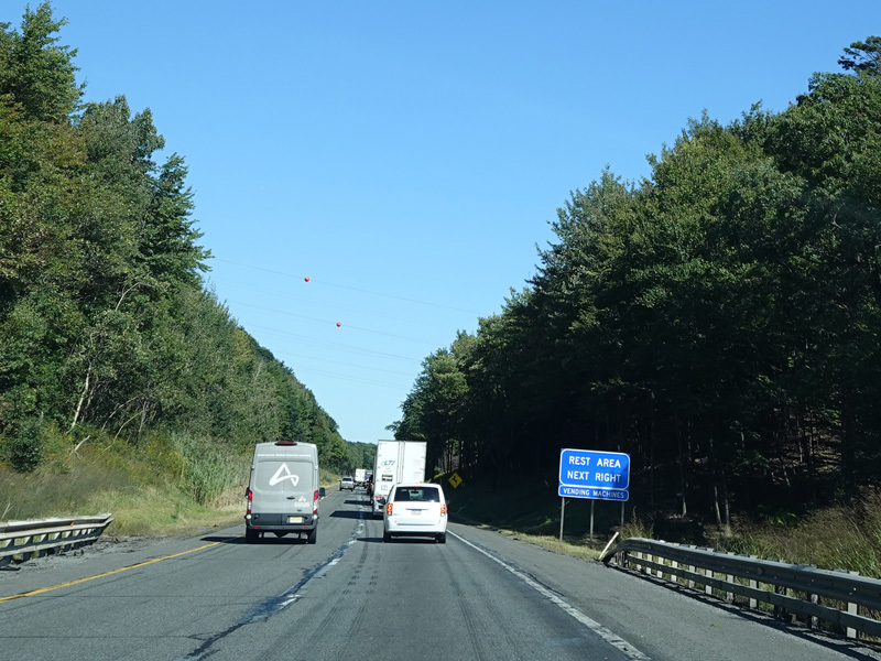 I-380 merges in from the left. There is a rest area on the right after the merge.
