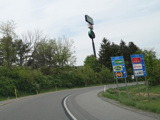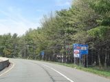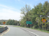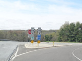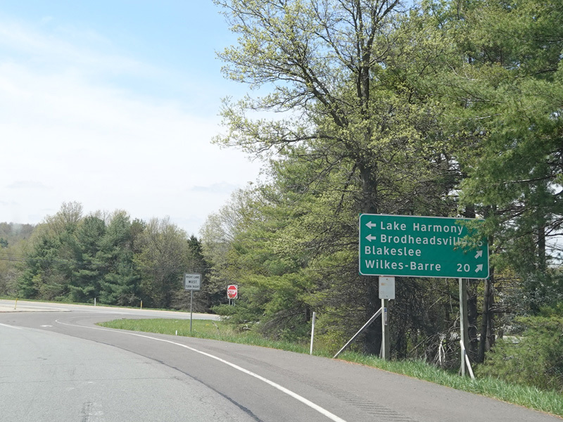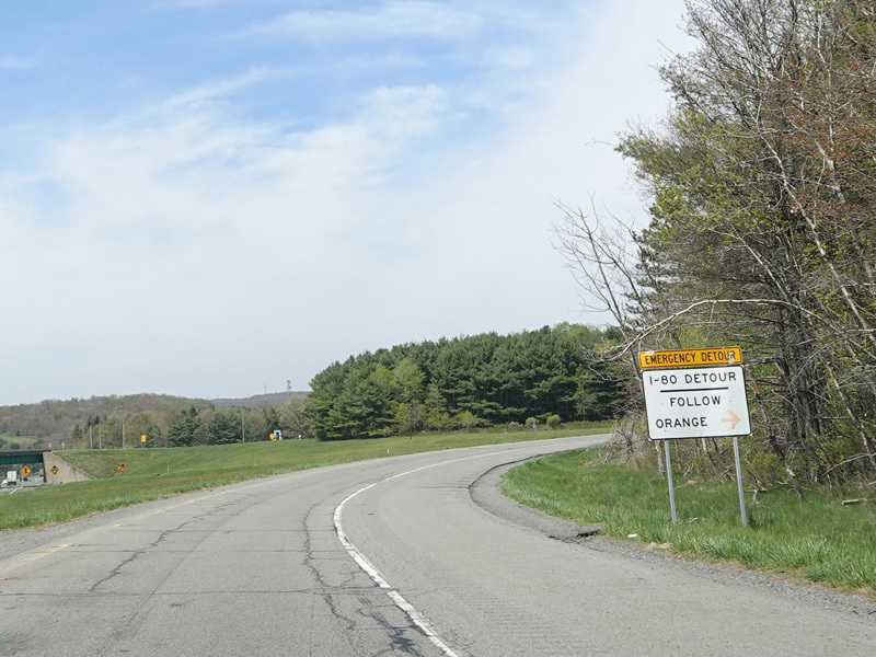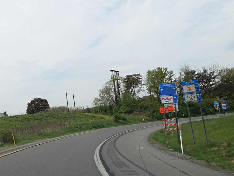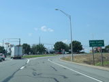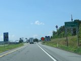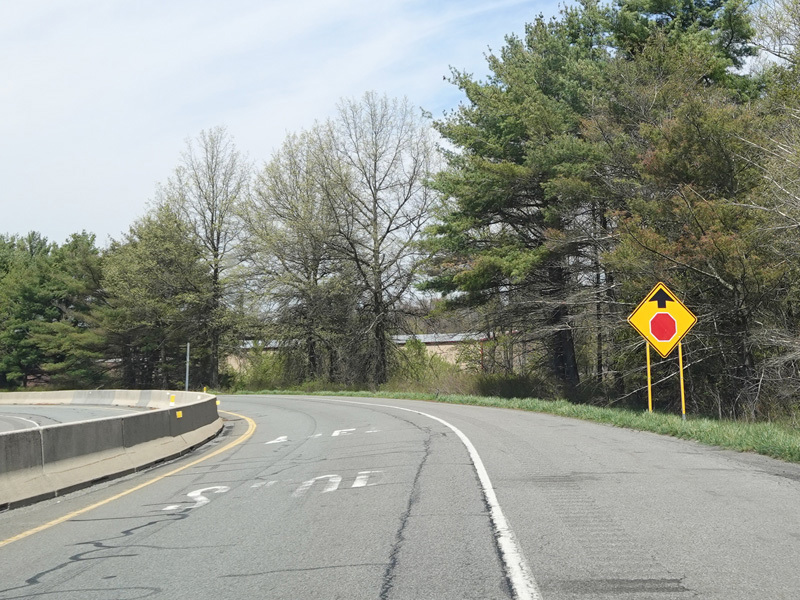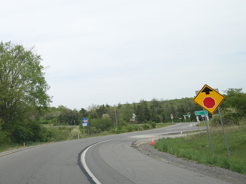 The ramp for exit 224 when travelling west ends at a stop sign at Continental Boulevard (PA 54). Turn right to go east or left to go west.