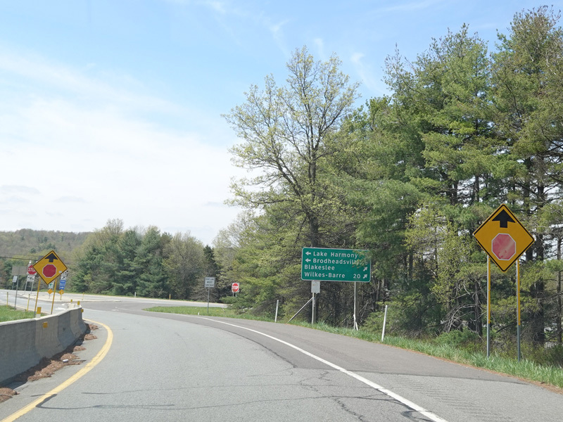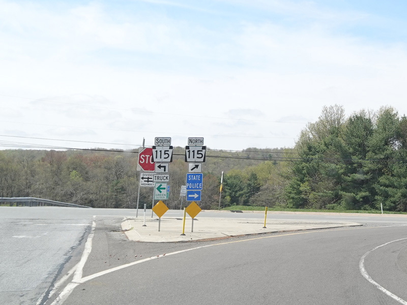 The ramp for exit 284 when travelling west ends at a stop sign at PA 115. Turn right to go north or left to go south.