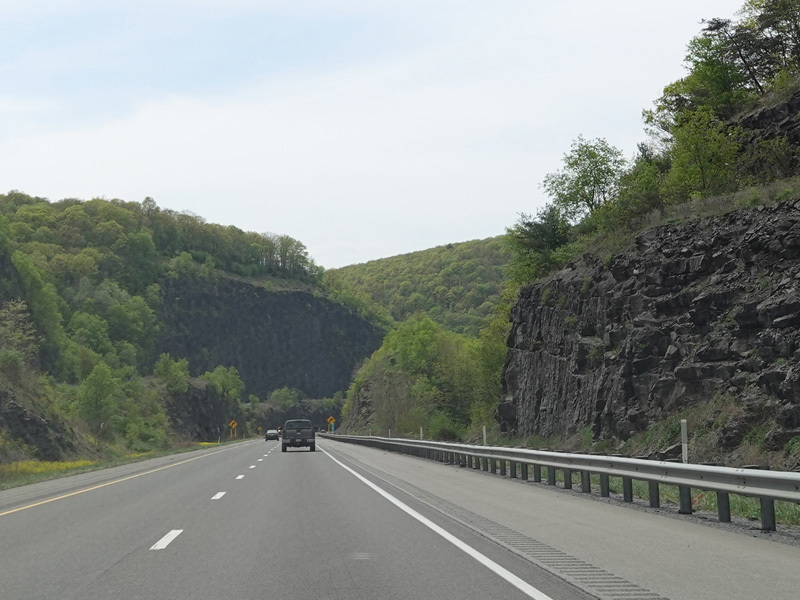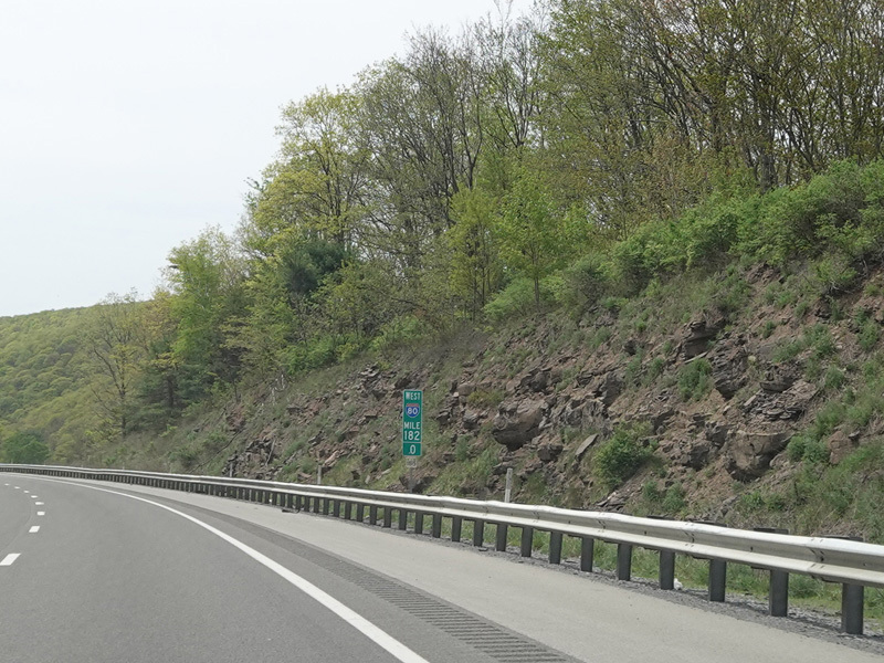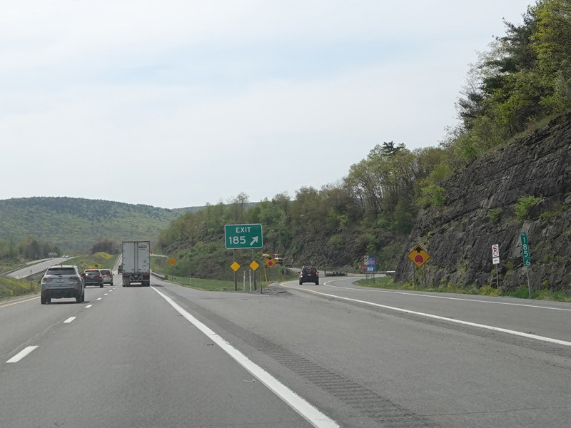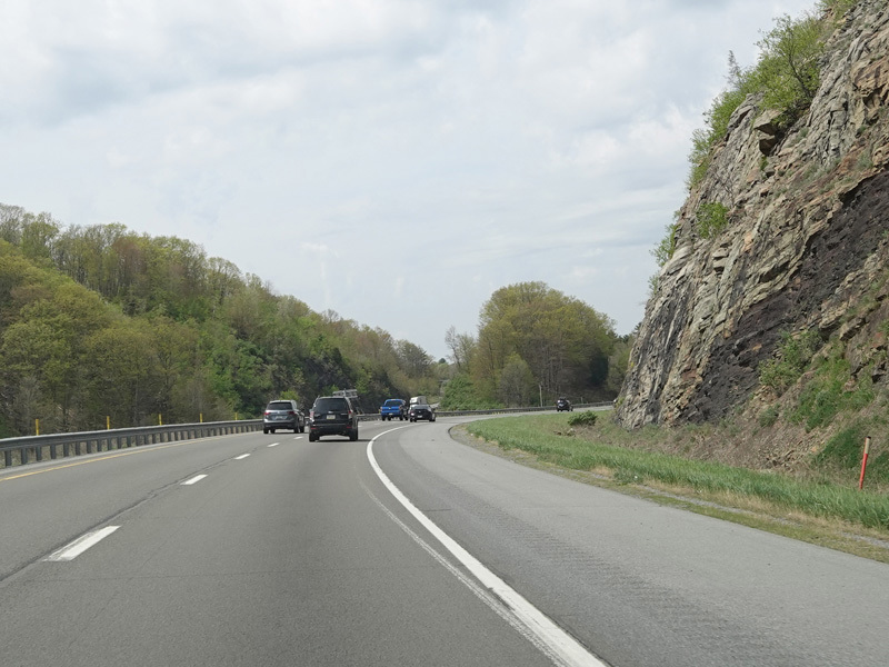 There are more cliffs between exit 185 and exit 178, including a rock cut with high rock walls on both sides of the highway.