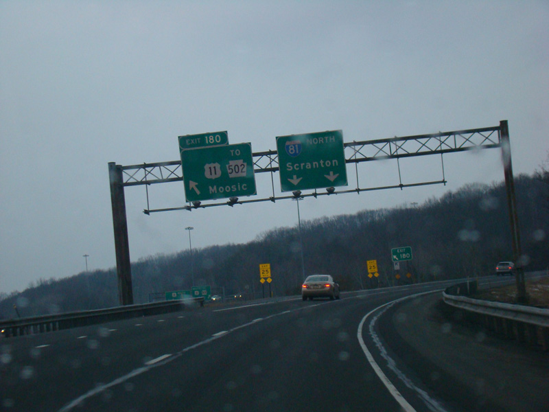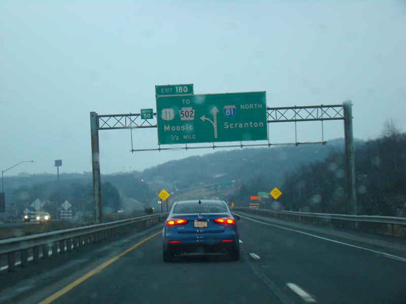 Exit 180 is for Birney Avenue (US 11) and Springbrook Avenue (PA 502).