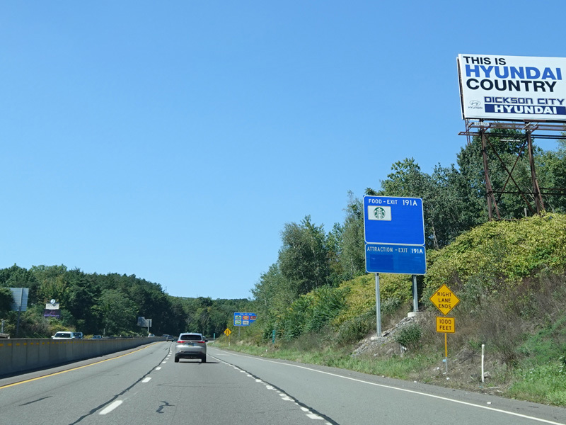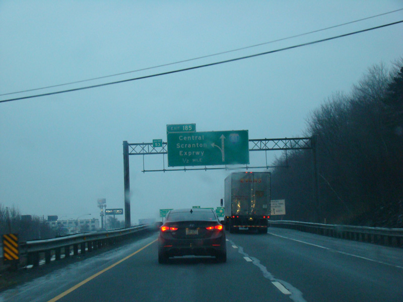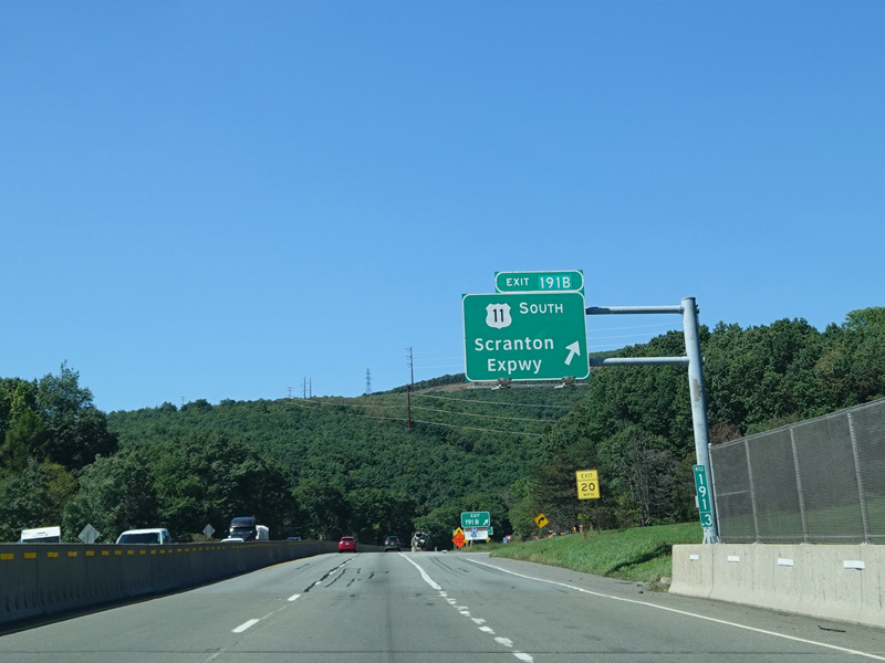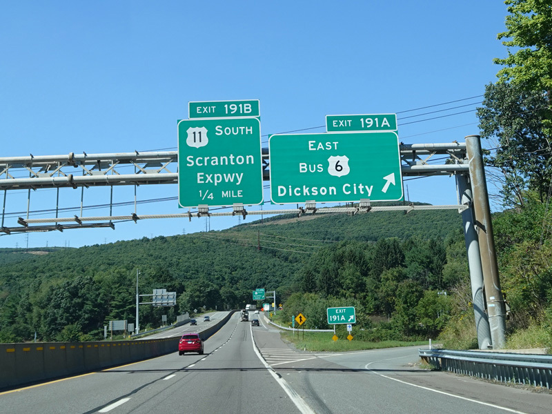 Exit 191A is for Scranton-Carbondale Highway (Business US 6) east. Exit 191B is for the North Scranton Expressway (US 11) south.