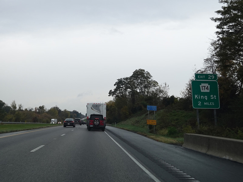 Exit 29 is for Walnut Bottom Road (PA 174), which leads to King Street (US 11).
