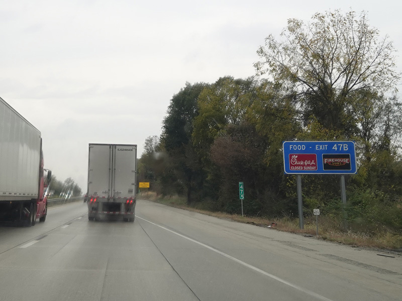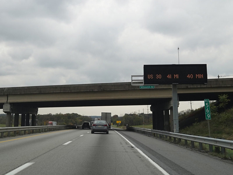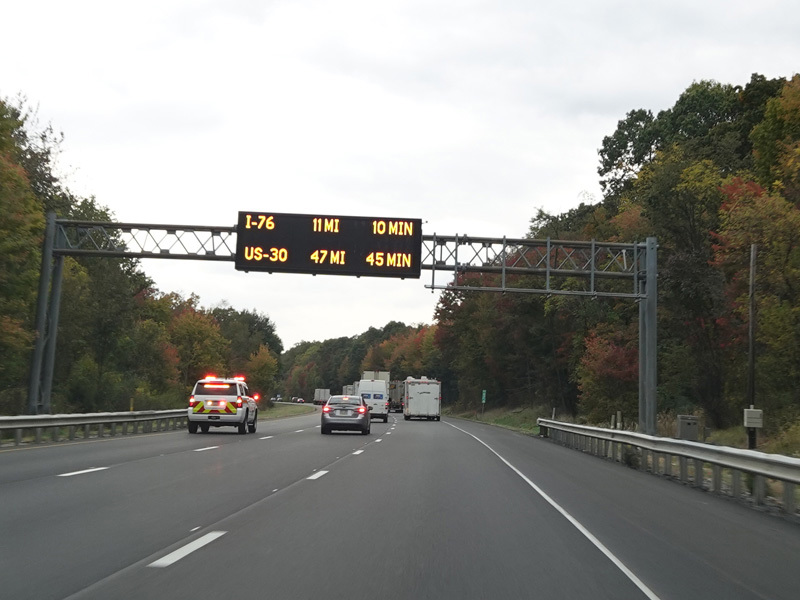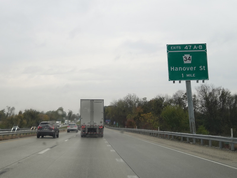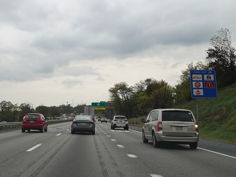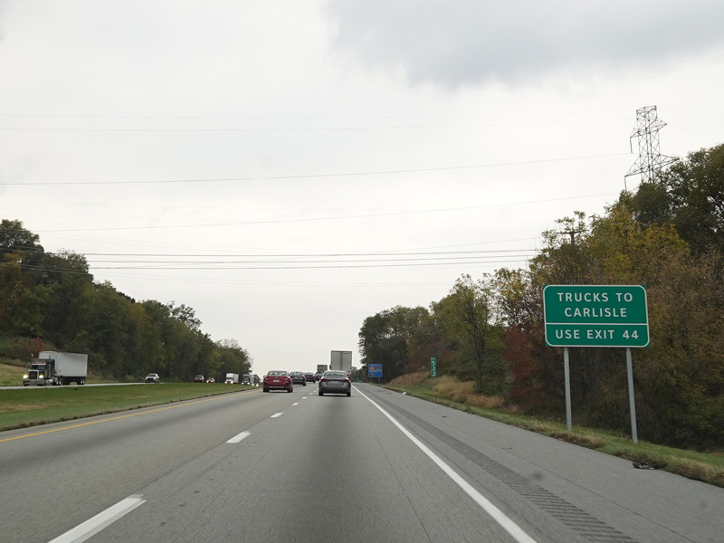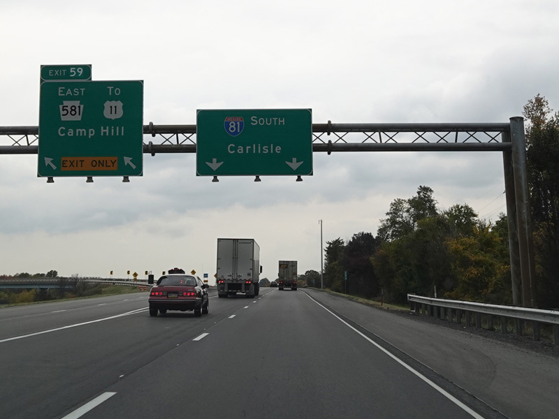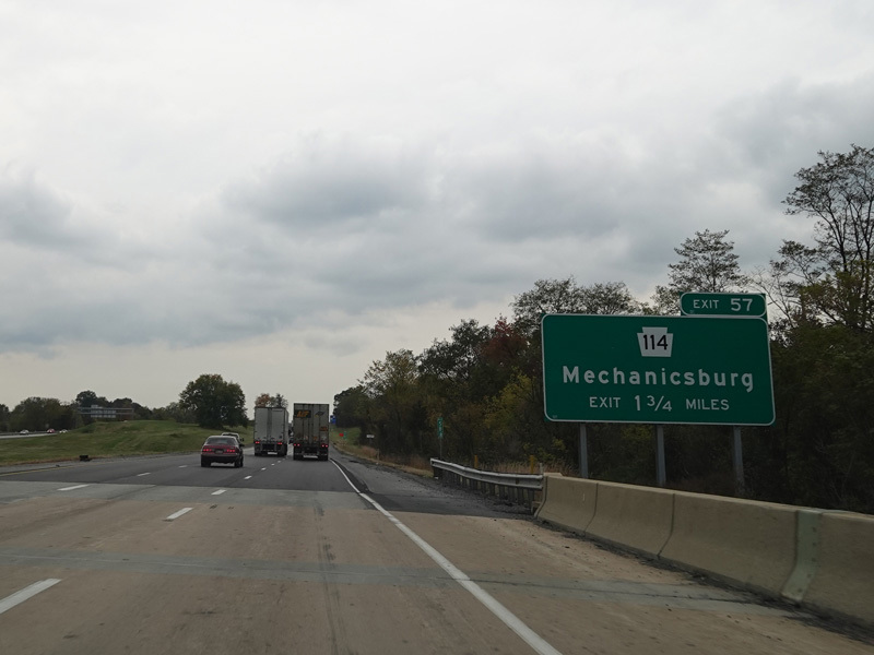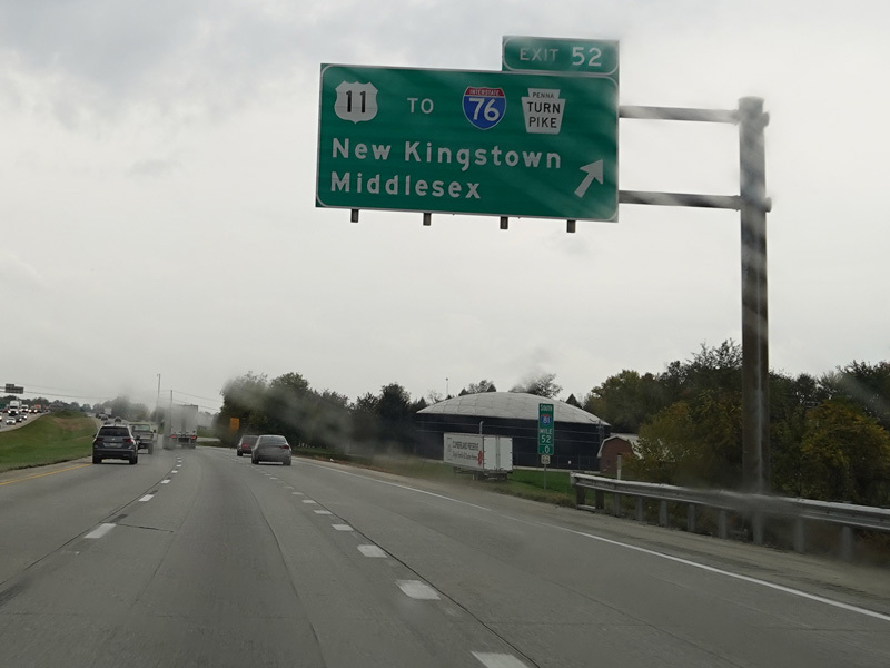 Exit 52 is for Harrisburg Pike (US 11) and the Pennsylvania Turnpike (I-76).