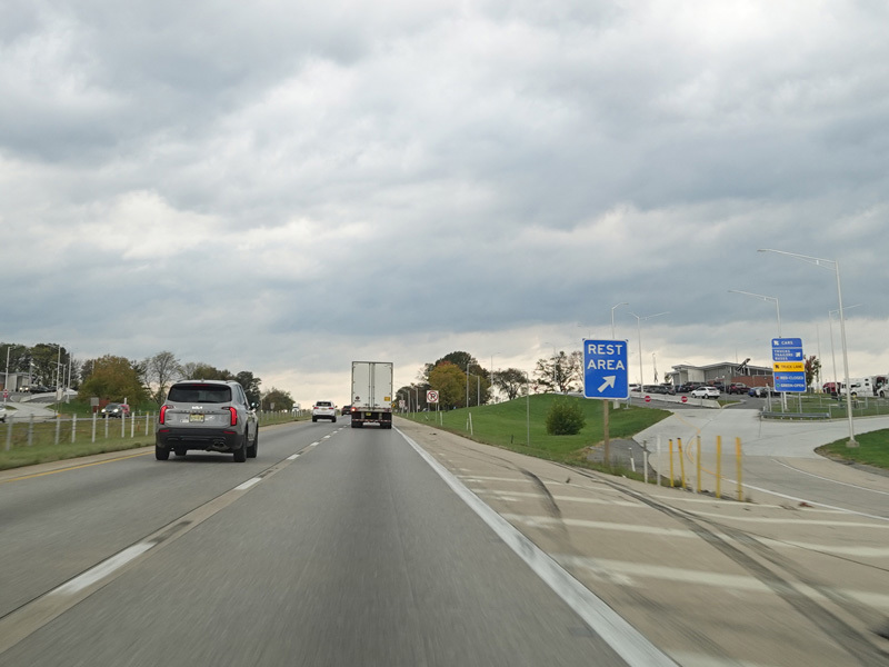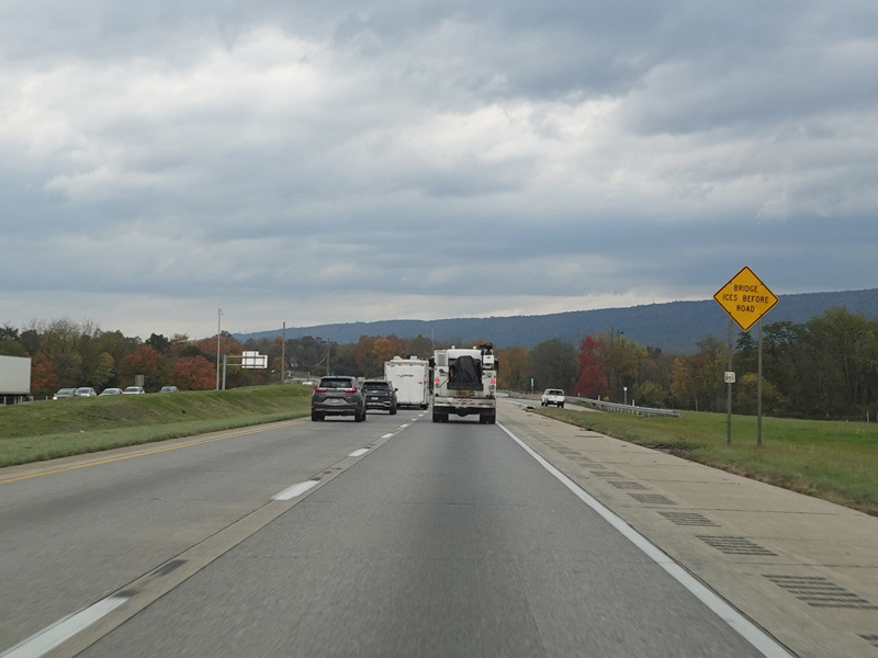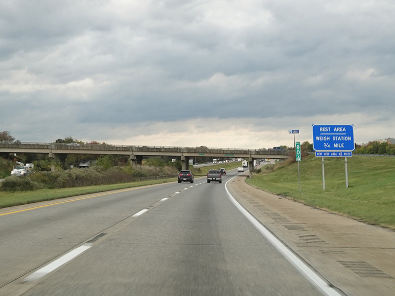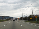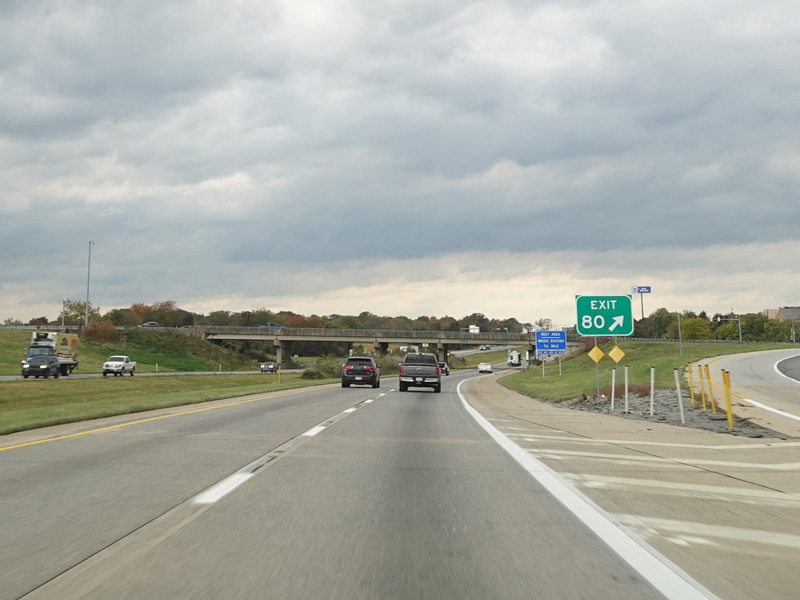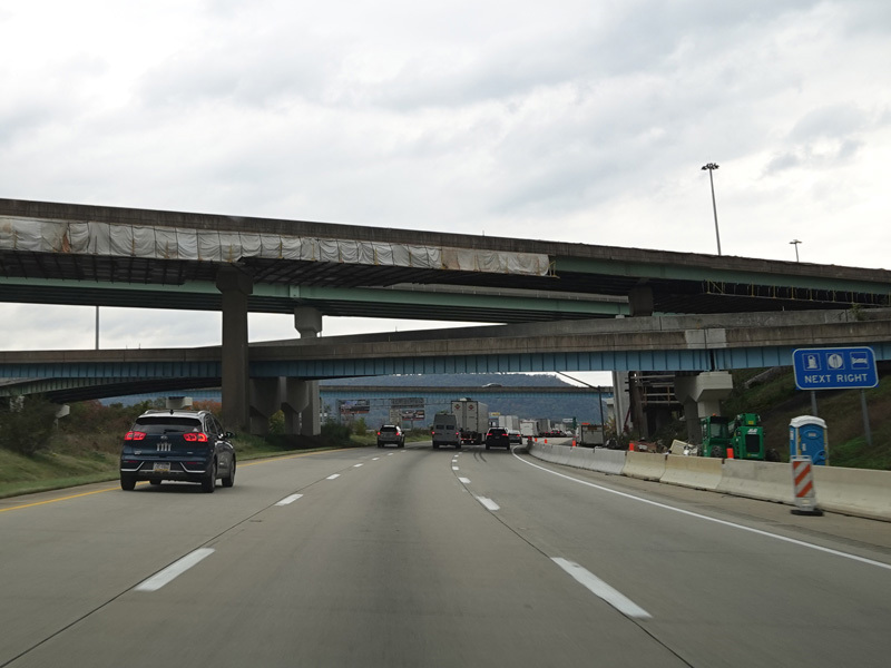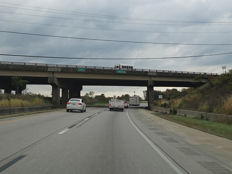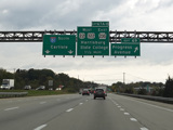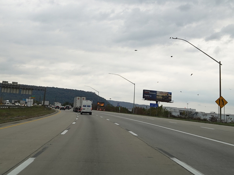 Exits 67B-A are for US 22 and Cameron Street (PA 230). US 322 splits off here and is multiplexed with US 22 to the west.