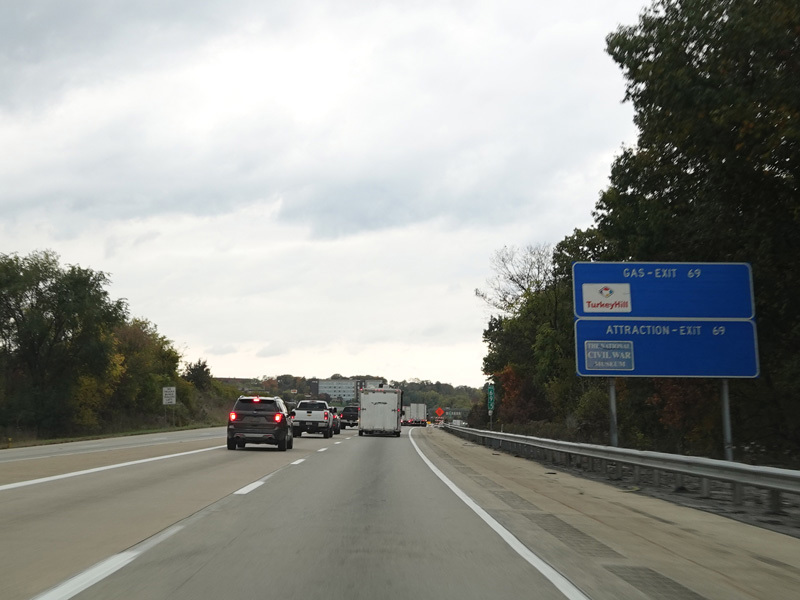 I-83/US 322 merges in from the left. Exit 69 is for Progress Avenue.