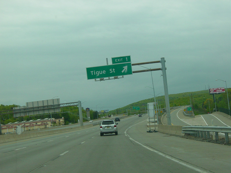 I-84 begins at I-81 in Dunmore. It is multiplexed with I-380 for the first few exits. Exit 1 is for Tigue Street.