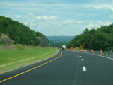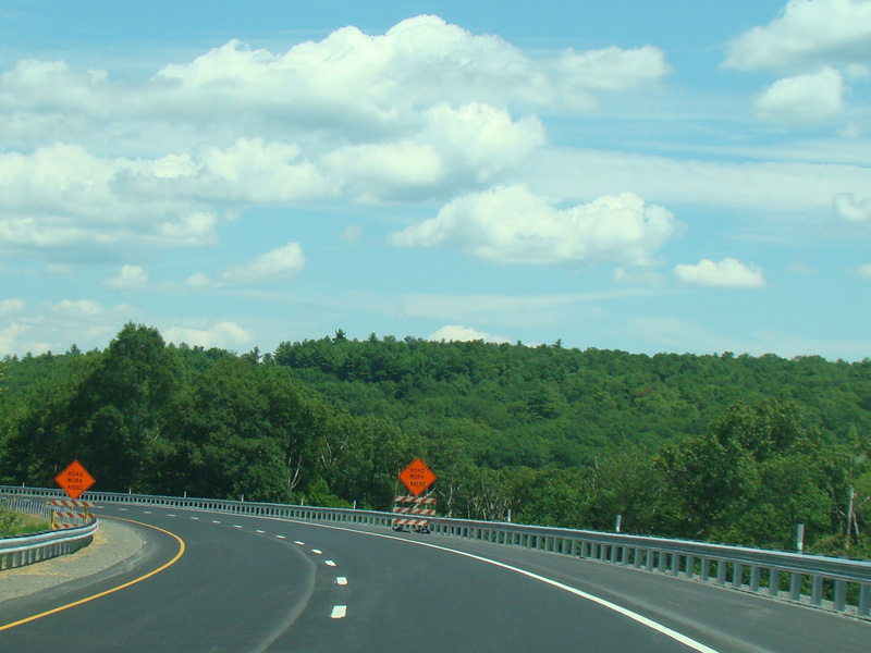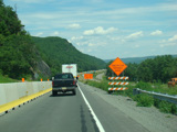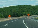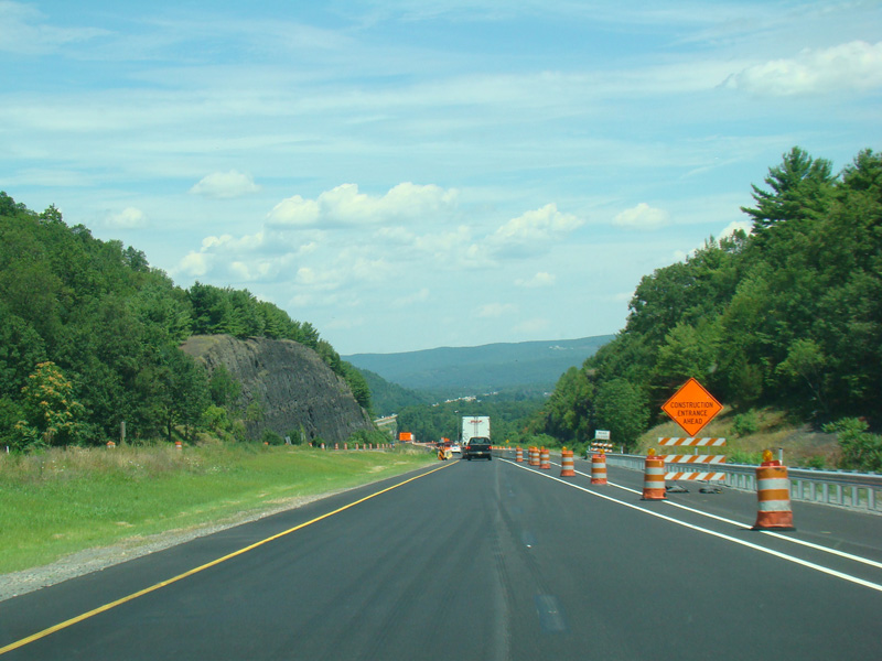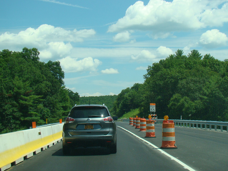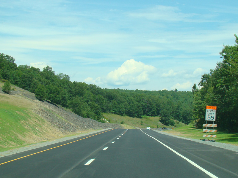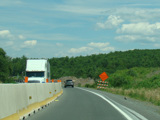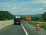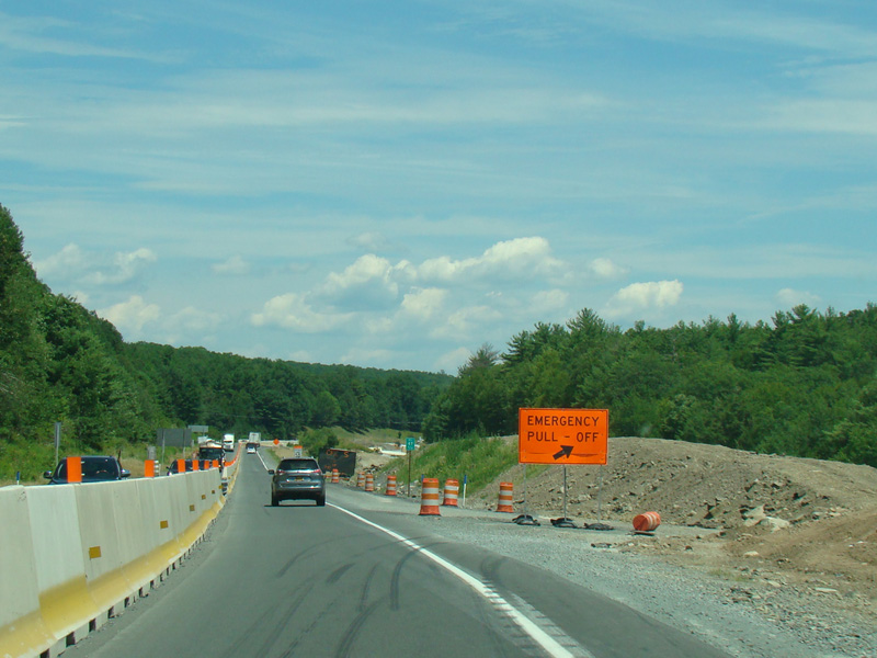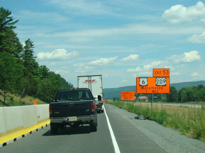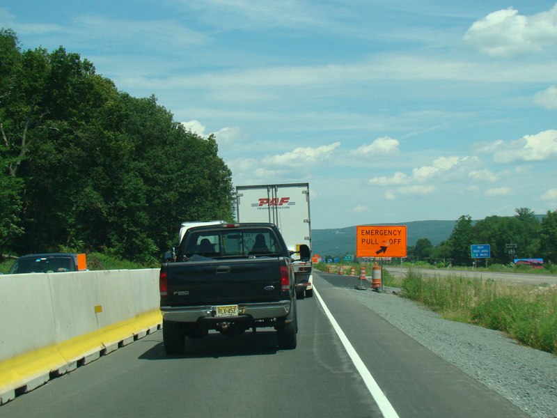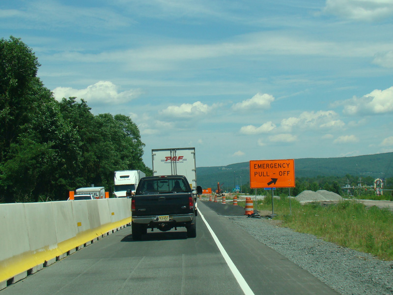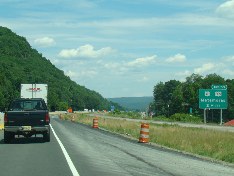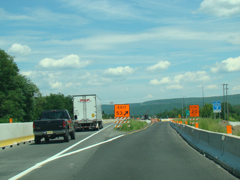 Exit 53 is for Pennsylvania Avenue (US 6/US 209). Due to construction, all traffic is forced into what are normally the eastbound lanes, with one lane for each direction. There is a temporary ramp crossing over to the westbound lanes to provide access to the exit.