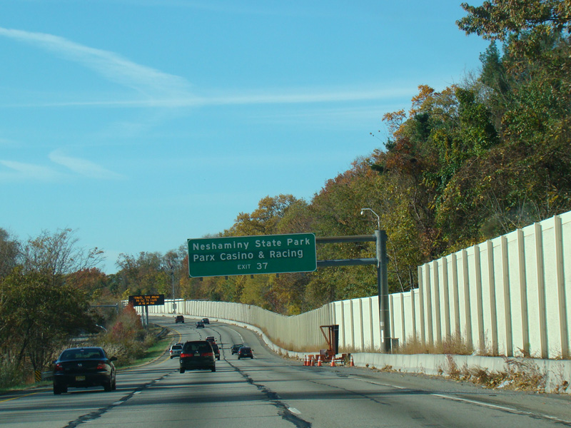 These pictures show the Delaware Expressway as it appeared while the interchange with the Pennsylvania Turnpike (I-276) in Bristol was under construction. Most of this section has been renumbered from I-95 to I-295, and the exit numbers have changed.