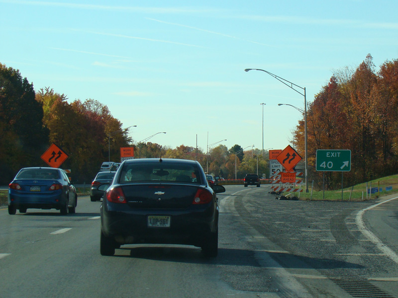 These pictures show the signage at the exit 40 split as it appeared when it was first installed. Text has been added instructing motorists to use the right lane to stay on I-95.