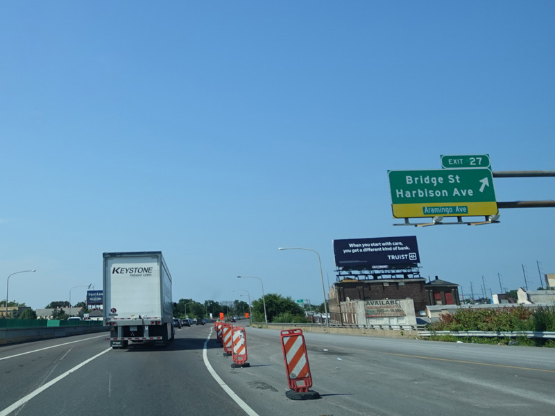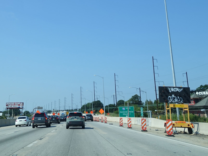 These pictures show the Delaware Expressway at exit 26 as it appeared while the ramp to Aramingo Avenue was closed due construction.