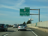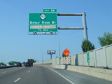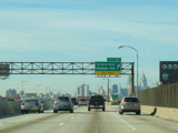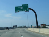 These pictures show the Delaware Expressway at exits 25-23 as it appeared during an earlier stage of the reconstruction. All of the signs shown have been replaced.