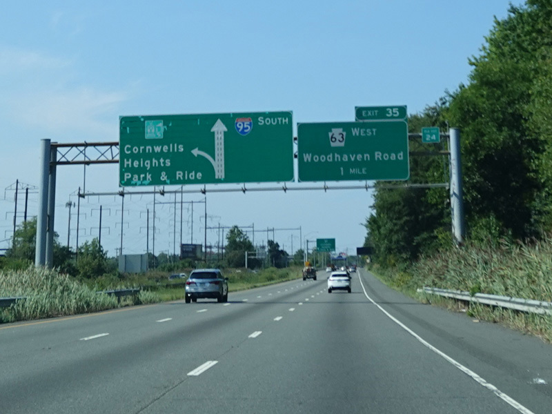 There is an unnumbered exit for the Cornwells Heights Park and Ride. Exit 35 is for Woodhaven Road (PA 63) west.