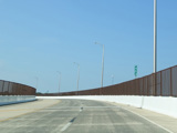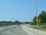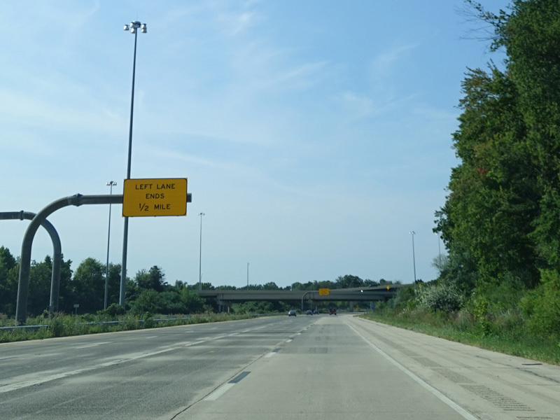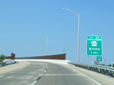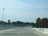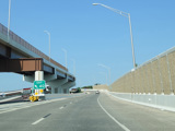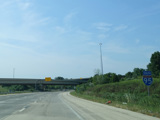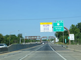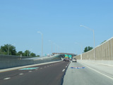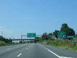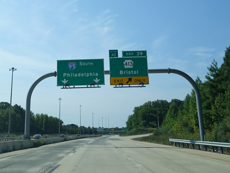 A flyover roadway curves to the south, crossing the Pennsylvania Turnpike (I-276), and merges with the Delaware Expressway, which is designated I-295 north of here. Exit 39 is for Veterans Highway (PA 413).