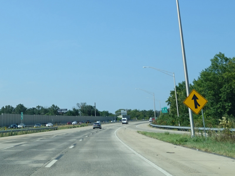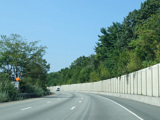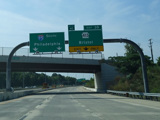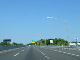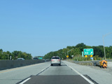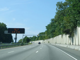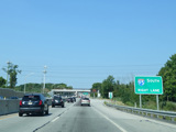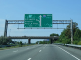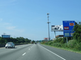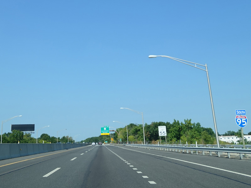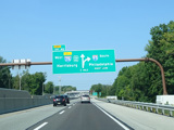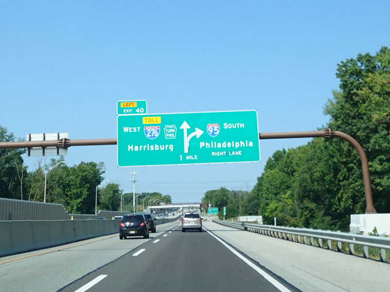 The roadway splits. Exit 40, a left exit, is for the Pennsylvania Turnpike (I-276) west. Bear right to continue on I-95.