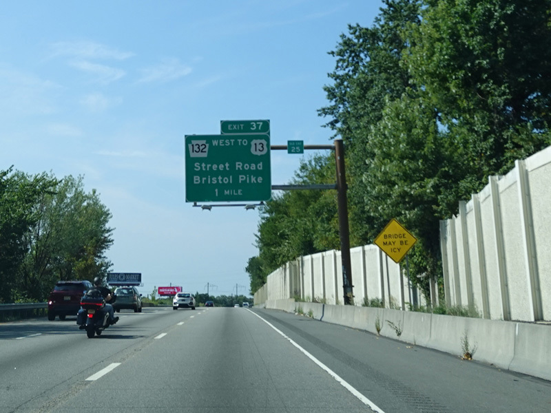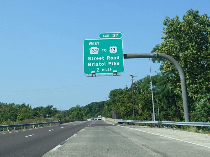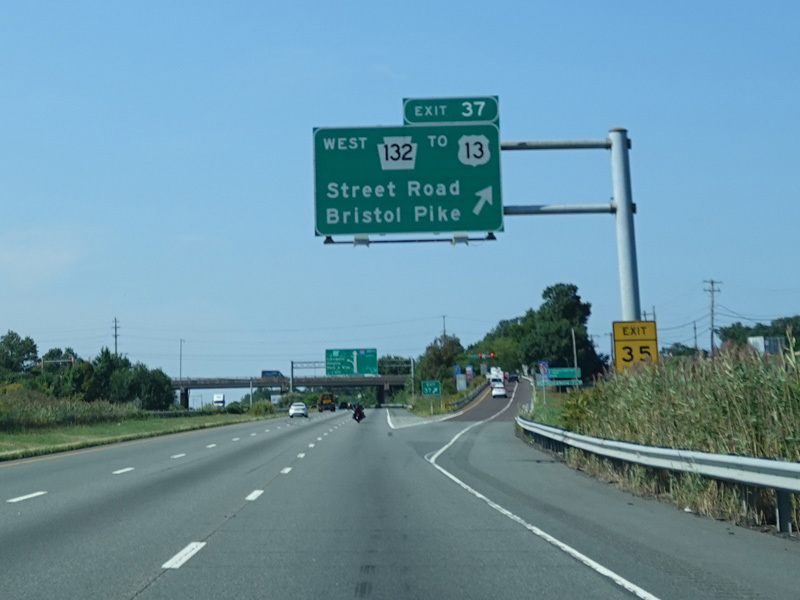 Exit 37 is for Street Road (PA 132) west and Bristol Pike (US 13).