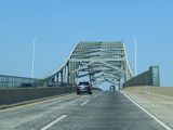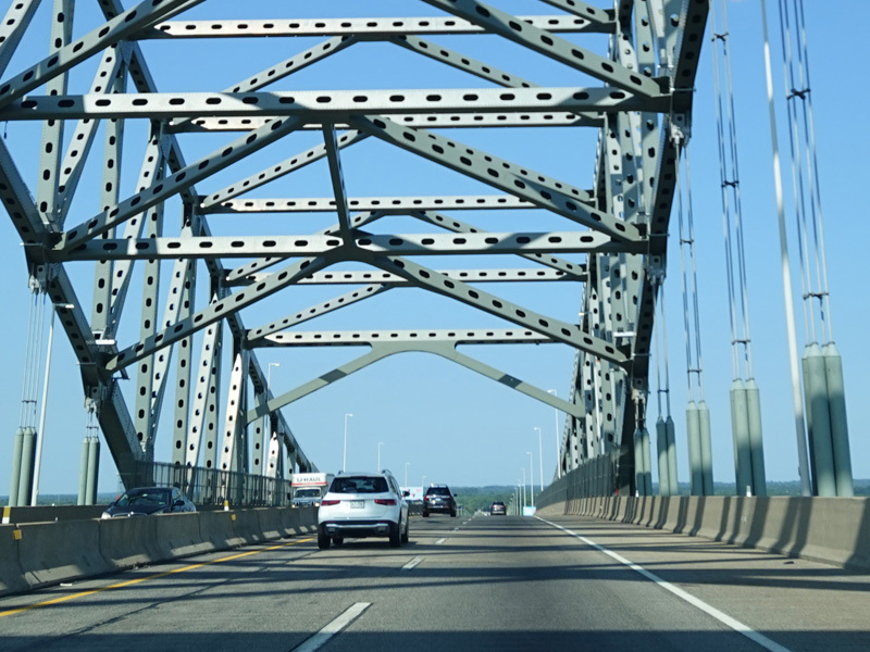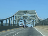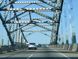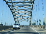 The Delaware River Bridge crosses the Delaware River from New Jersey to Pennsylvania.