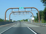 Welcome to Pennsylvania! There is a cashless tolling gantry where the toll for the Delaware River Bridge is charged.