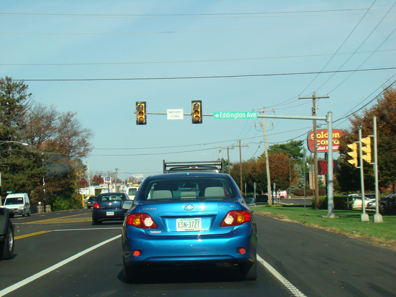 There is a traffic light at Hulmeville Road (PA 513). Turn right to go north or left to go south.